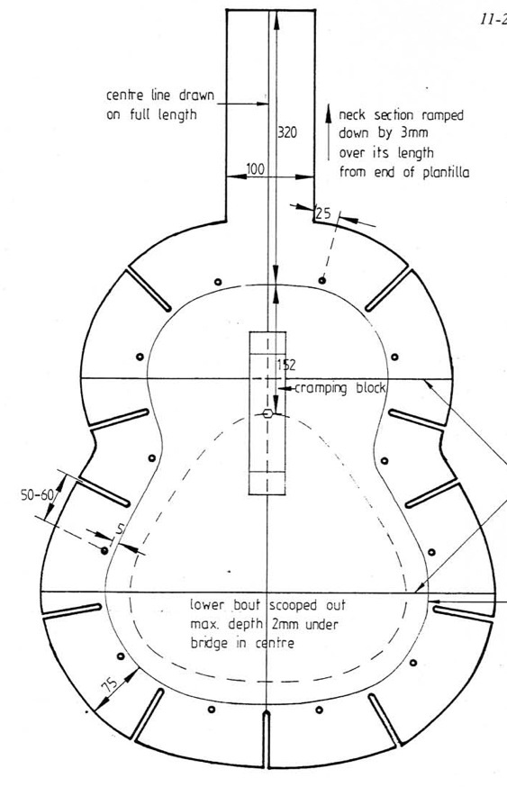 η σημείωση στο σχέδιο γράφει "neck section ramped down by 3mm over its length from end of plantilla" (plantilla = template)...