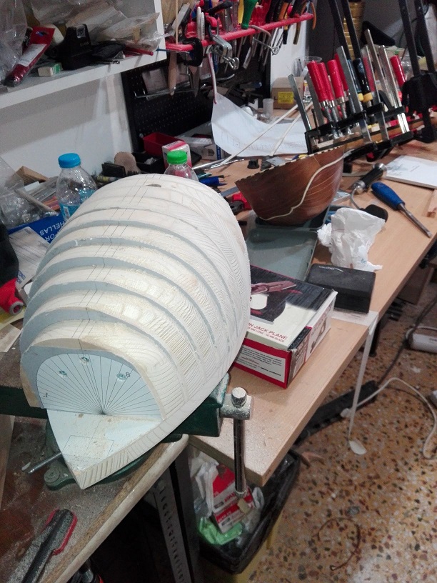 Όσο για το καλούπι οι διαστάσεις του είναι μήκος 26 εκ. πλάτος 18 εκ ύψος 11,3 το είχα σχεδιάσει για πάχος δουγας 3 χιλ αλλά κάτι έτοιμες που πήρα χωρίς να τις εχω τρίψει για να φύγουν τα σημάδια της κορδέλας ειναι 2,7 χιλ. περίπου και δεν ξέρω πόσο θα φτάσουν με το τρίψιμο βεβαία μικρή η διαφορά αλλά δεν θέλω να είναι πολύ λεπτές πιστεύω παίζει ρόλο για την όλη τη στιβαρότητα του σκάφους αν κάνω λάθος διορθώστε με.