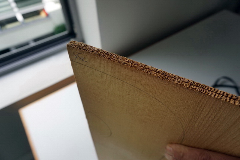 Συνήθως λοιπόν τα καπάκια τα ζητάω κατεβασμένα στα 3 χιλ. αλλά αυτό είναι 5 χιλ. και ο Μαυρομουστάκης δεν έχει drum sander να το κατεβάσει, το πήρα λοιπόν και το δούλεψα όπως είναι. Ίσως αυτή η διαφορά και το σκληρότερο υλικό επηρέασε (που δεν κατάφερα να φέρω τα σόκορα).
