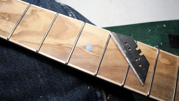 αυτό αν ήταν η ταστιέρα ελεύθερη, το dot το έβαλα με τα τάστα πάνω, δεν θα μπορούσα να τρίψω-γυαλίσω μόνο ένα διάστημα.