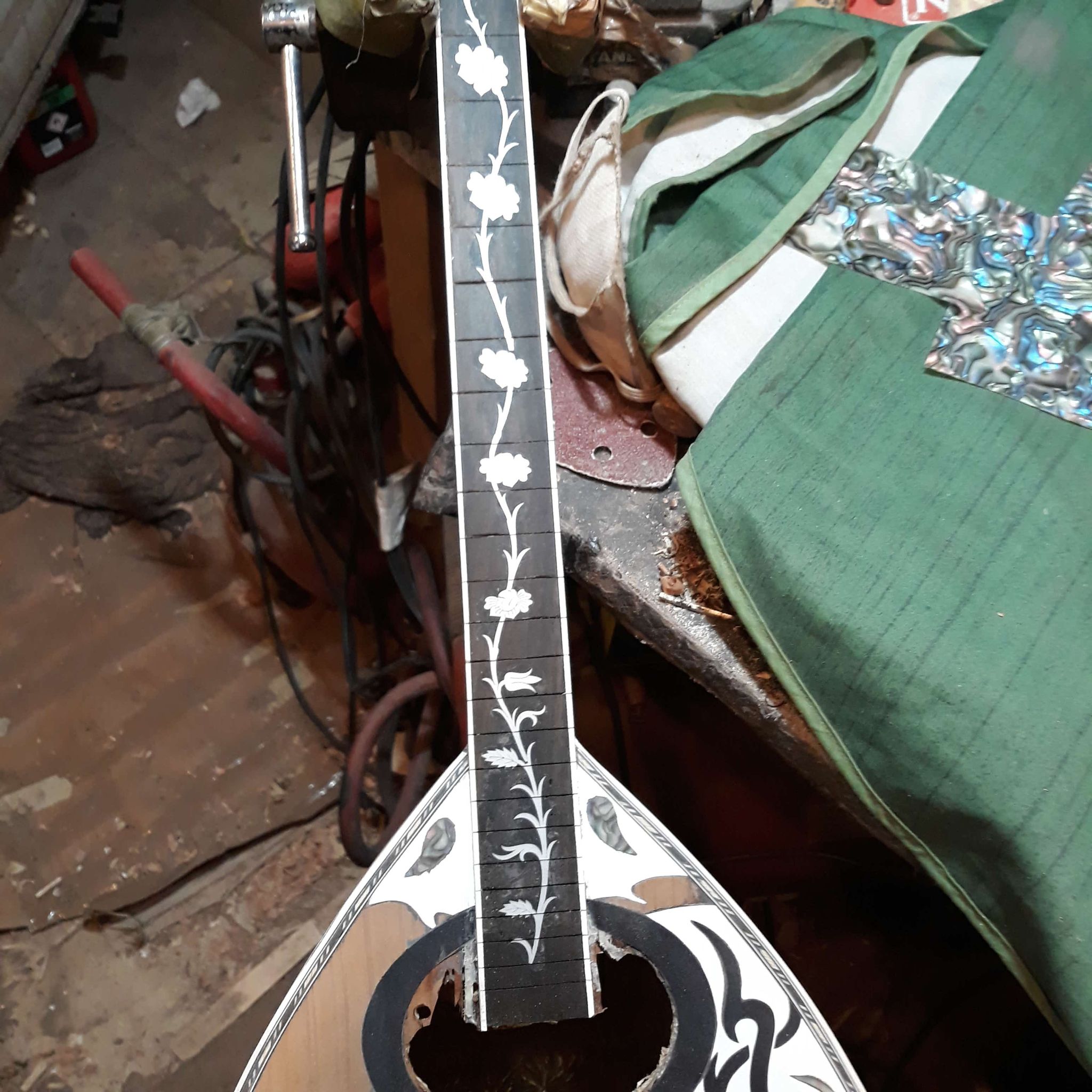 Όταν είχα χρησιμοποιήσει πλάκα από mother of pearl (φιλντισι) το περίγραμμα το είχα κόψει σε σεγα χειρός με το πιο ψιλο δόντι.. συμπεριφέρεται σαν το κόκκαλο του καβαλάρη μόνο που είναι λίγο πιο σκληρό.. το ετριψα με γυαλοχαρτο κανονικά και το κόλλησα με κυανοακρυλικη..ένα πανέμορφο υλικό..