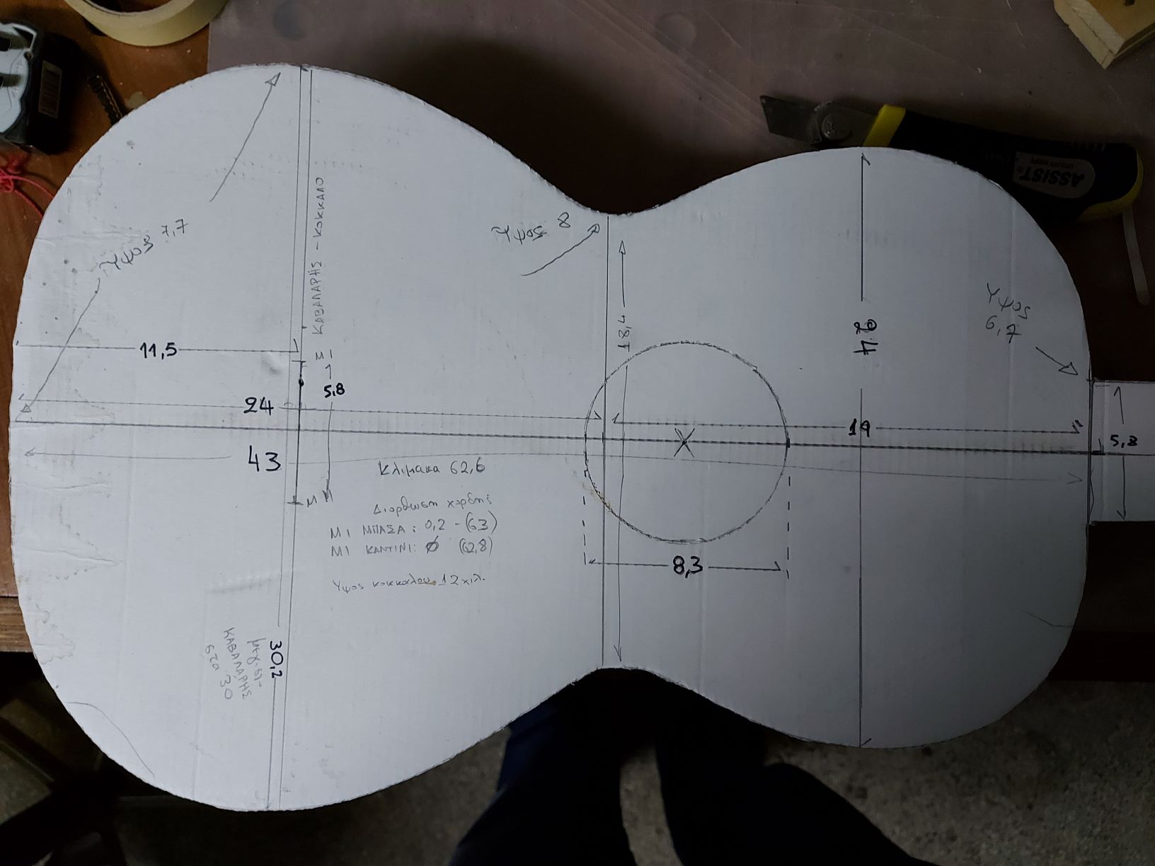 Οι διαστάσεις φαίνονται στην πρώτη φωτογραφία όπου έφτιαξα αντίγραφο σε φυσικό μέγεθος από χαρτόνι.