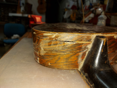 Μια ατασθαλια απο μερους μου. Κανονικα ενα τετοιο οργανο θελει ψαροκολλα. Εχω παρει αλλα δεν εχω  χρησιμοποιησει ποτε και με αγχωνε να την δοκιμασω πρωτη φορα εδω. Ετσι η κολλα της επισκευης ειναι titebond. Συγχωρεστε μου λοιπον φιλοι μου το μικρο μου απο φοβο ατοπημα.