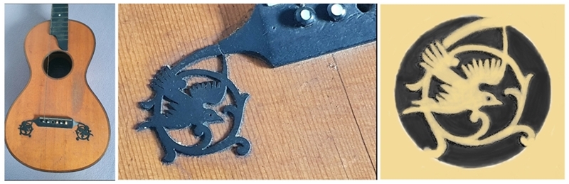Όσο για τις ροζετες, είναι νομίζω κοινή τάση να εμπνεομαστε από διάφορα παρεμφερή σχήματα. Εγώ στον κιθαροτζουρα που φτιάχνω, θα κάνω ροζετα το σήμα γνωστής  αμερικανικής εταιρίας ένδυσης με σήμα τον σφένδαμο