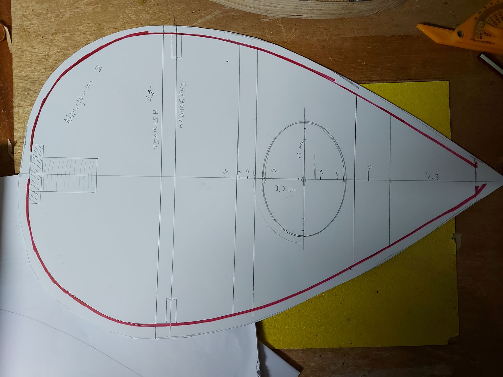 Να συμπληρώσω πως η γωνία της τσάκισης θα είναι γύρω στις 10-11 μοίρες. Μέτρησα 2 μαντολίνα που έχω προς επισκευή και βρήκα να είναι στις 12-13 μοίρες. Έτσι είπα να την κάνω λίγο μικρότερη μιας και εδώ έχω μεγαλύτερο σκάφος.