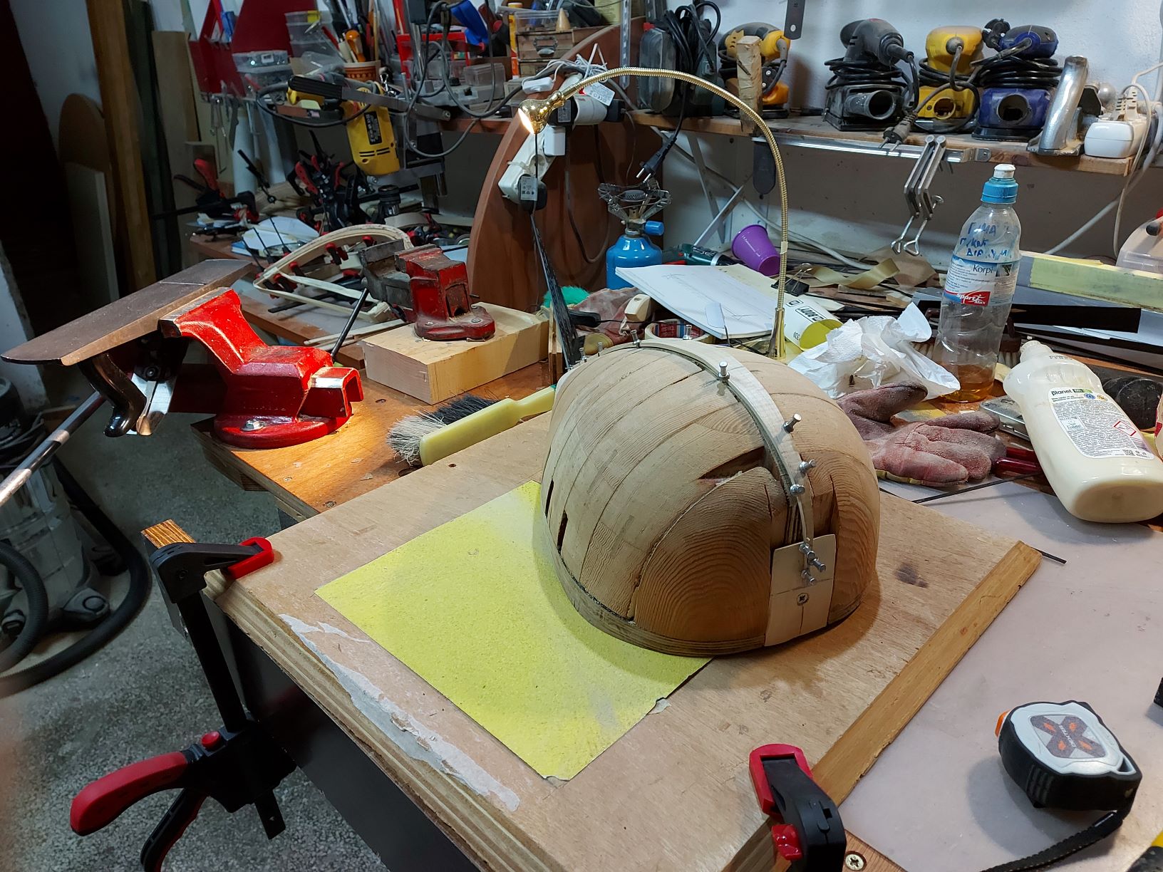 Εκλεισε το σκαφος. Τριφτηκε με ρασπα, λιμα και ξυστρα. Κοπηκε και η κολατζα. Ενα μικρο διαλειμα και ξανακατεβαινω στο εργαστηριο να κολλησω τη κολατζα.