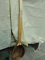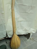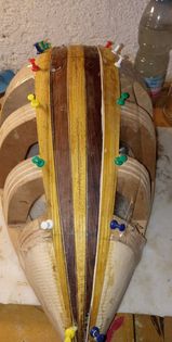 Εδώ έχουμε ένα όργανο που φτιάχνουμε με ένα φίλο μάστορα και καλλιτέχνη με άποψη. Επιμένει να κάνει όλες τις δουλειές στο γόνατο, με μία ράσπα, μία λίμα, σφικτήρες, γυαλόχαρτο , κόλλα και ταστοπρίονο. Οι μεθόδοι του είναι ανορθόδοξες αλλά έχει βγάλει ωραία όργανα.