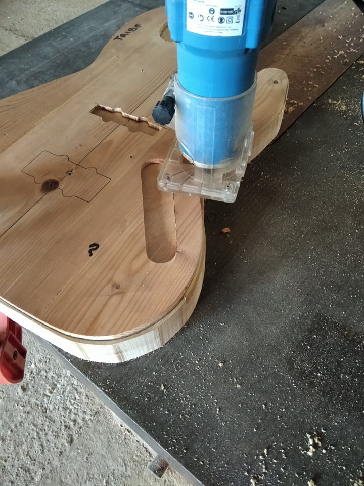 Τα ξυλα για το σωμα ειναι δυο κομματια λιμπα και δυο κομματια κελεμπεκι απλο.Κολληθηκαν ολα μαζι......και στη συνεχεια ρουταριστηκαν συμφωνα με το νεο tamblate................