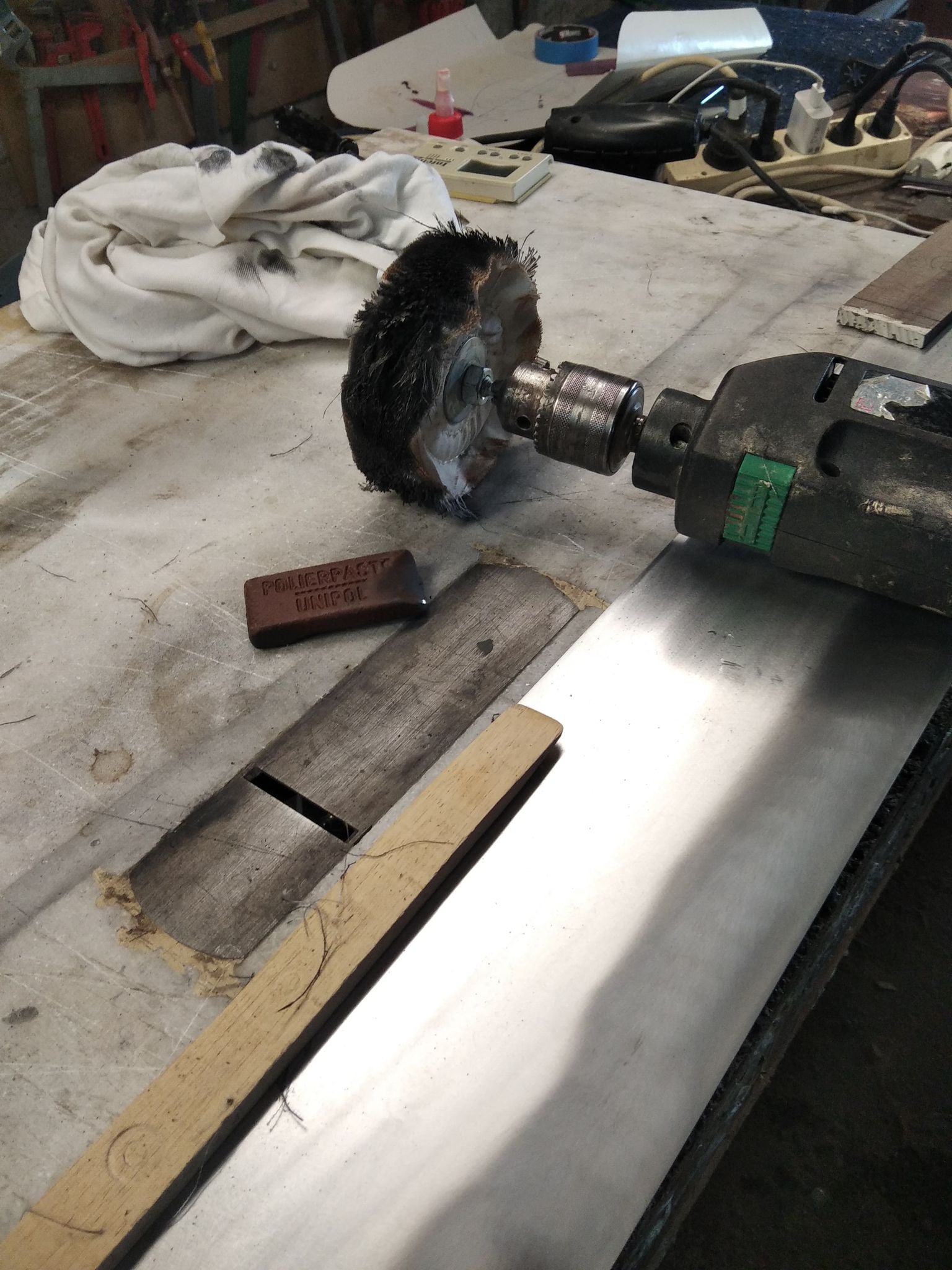 Τωρα το δυσκολο μερος........................και λεω δυσκολο διοτι αλλο ναχεις ενα μασιφ κομματι να βαλεις περιμετρικα κι αλλο εναν καπλαμα ειδικα τοσο ντελικατο.Ρουτερ ξανα στο χιλιοστο για να αποφυγω οσο το δυνατον τα πολλα με την ξυστρα, και παμε.Αλλη μια παραξενια του ιδιοκτητη ειναι το binding.Το θελω σιδερενιο λεει.Κι οχι μονο σιδερενιο αλλα νικελωμενο.Ενταξει του λεω  χαλαρωσε και μην παιρνεις φορα.Το σιδερο δεν γυρναει ομορφα εκει στα μυτερα τμηματα.Ετσι βρηκα ενα κομματι αλουμινιο το οποιο ομως ηταν ματ.Αφου ετριψα με DW40  και γυαλοχαρτα 1000-1500-2000-2500, γυαλισα με βουρτσα και σαπουνι γυαλισματος.Οσοι ειχαν μηχανακια τη δεκαετια του 90 ξερουν τι μαυριλα εφαγα.Γυαλισε ομως......