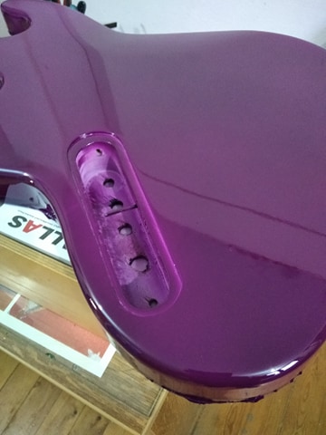 Εχω πει επισεις οτι η οργανοποιια ειναι οπως το σκακι.Πρεπει να σκεφτεσαι δυο με τρεις κινησεις μπροστα.Ειδικα οταν φτιαχνεις κατι χωρις templates και ειδικα οταν βαδιζεις σε αγνωστα μονοπατια.Στην περιπτωση μας υποτιμησα τα τεραστια κλειδια των μπασων και εκανα το headstock λιγακι κοντο αλλα και με κλιση προς τα δεξια οπως το κοιταζουμε.Το αποτελεσμα ειναι τοποθετοντας το κλειδι και υπολογιζοντας την διαδρομη της χορδης ,να βλεπουμε οτι κανει μεγαλη γωνια προς τα δεξια.
