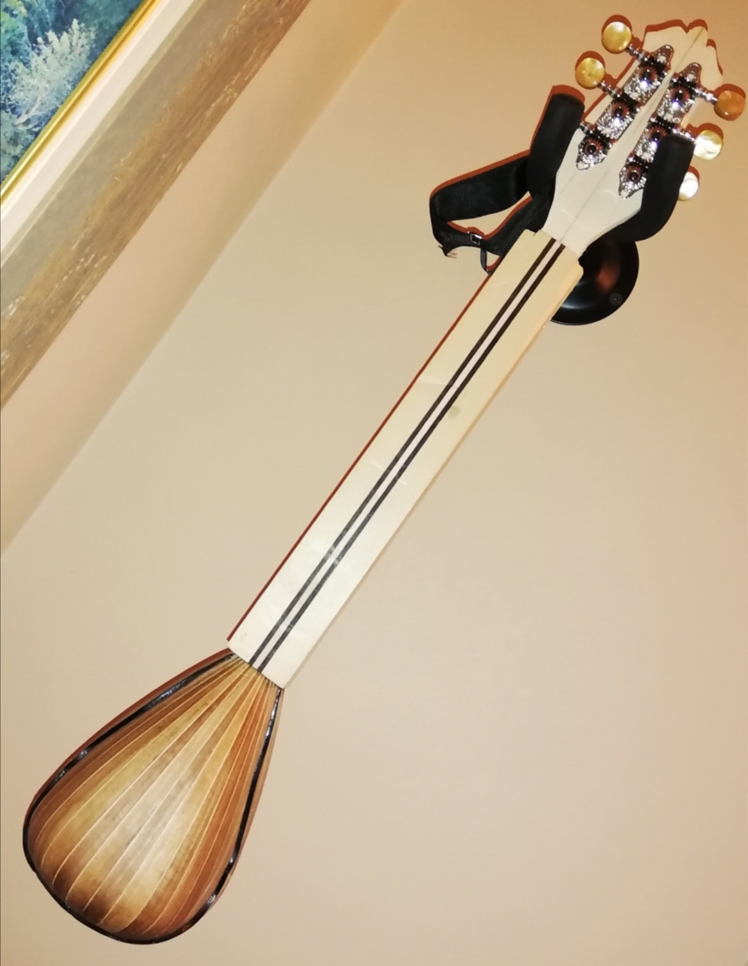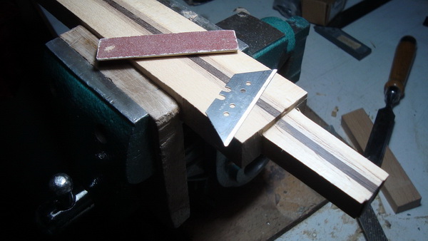 Βρεθηκα αυτες τις μερες στο εργαστηριο φιλου απο το φορουμ.  Ειδα μια φιγουρα που ειχε αγορασει απο γνωστο οργανοποιο της Θεσσαλονικης.  Στην κουβεντα πανω αναρωτηθηκε πως μπορει να φαινεται το ενθετο ξυλο ενιαιο, και οχι καπλαμαδακια η στοκαρισμα για τα ψιλα σημεια.