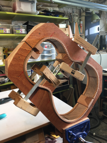 Στέργιε θα μου επιτρέψεις να πω πως οι κάθετες ξύλινες ενισχύσεις δεν μπαίνουν για να μην σχιστουν τα πλαϊνά, αλλά για να γίνουν άκαμπτα τα πλαϊνά.   Ώστε να μην συμμετέχουν στη δόνηση του οργάνου, και να δίνουν την δυνατότητα κουρδίσματος της πλάτης σε σχέση με το καπάκι, και όχι του σκάφους σε σχέση με το καπάκι.