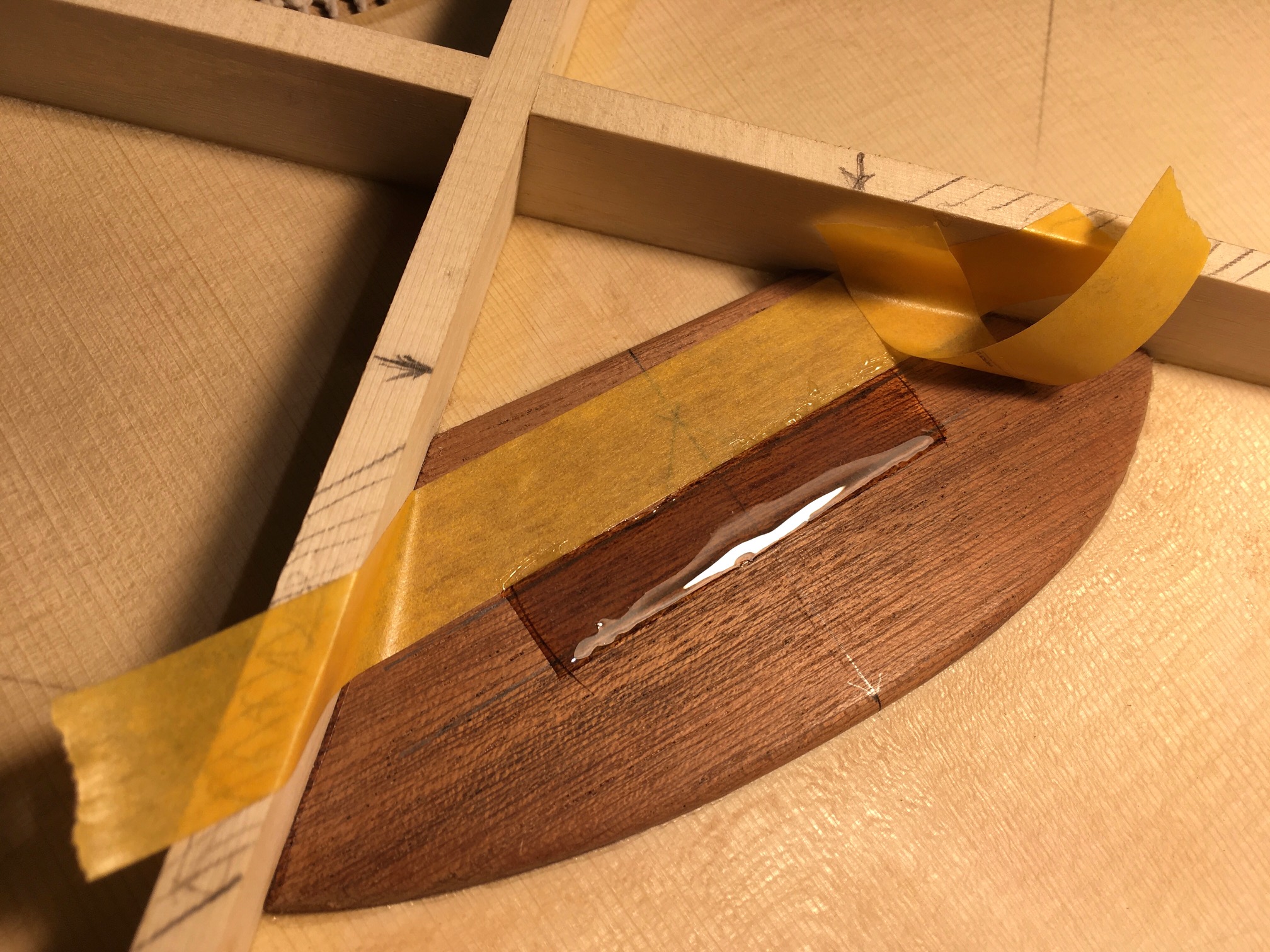 Υπολογίστηκαν επίσης (σωστά αυτή τη φορά όπως φαίνεται) οι τρύπες στα καμάρια για να περνάει το κλειδάκι Άλλεν και να φιλάει στο κεφάλι του truss rod.