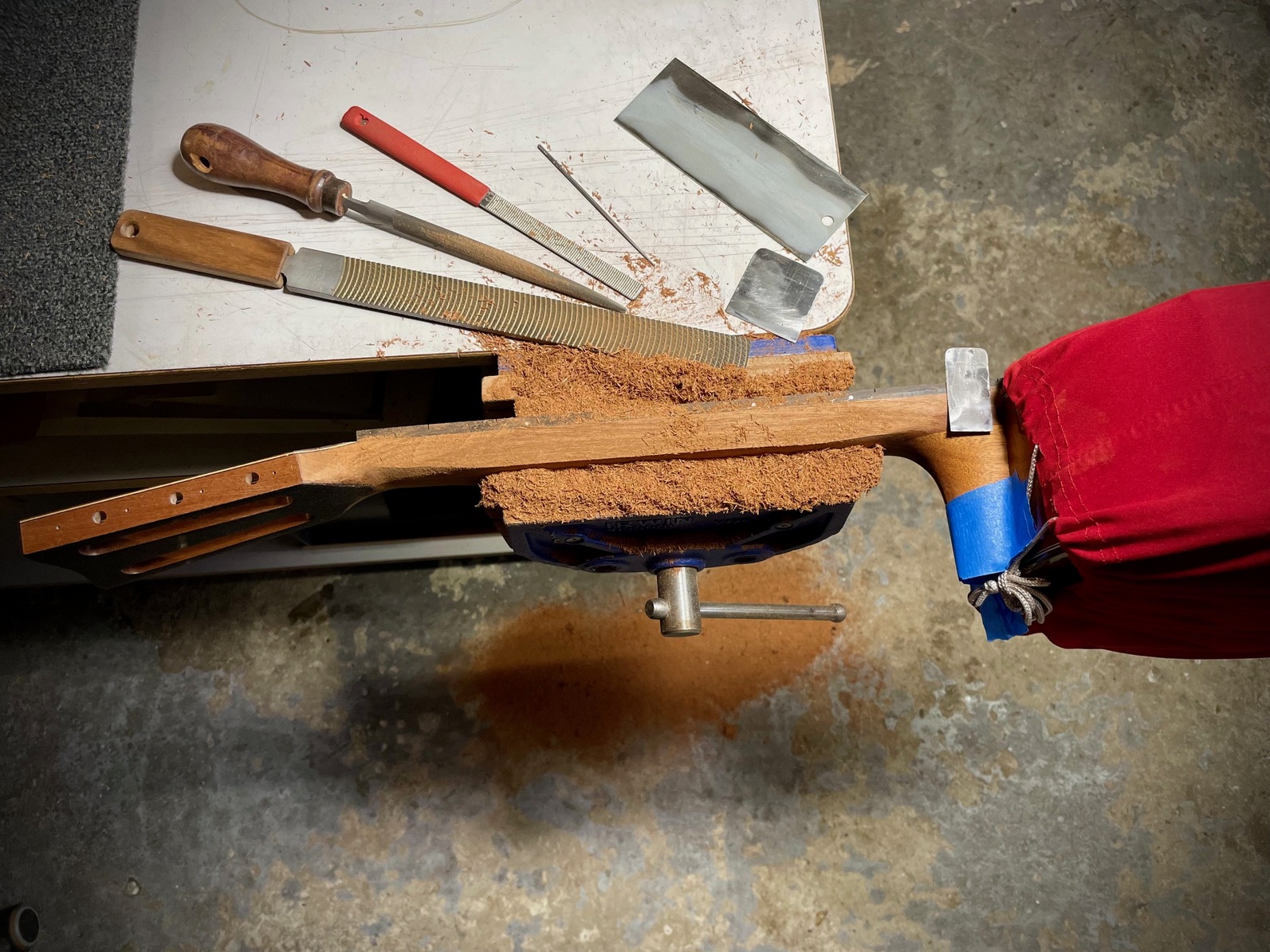 Γρούτσου-γούτσου με λίμες και ξύστρες μέχρι να φανεί (εξ αποκαλύψεως!) το επιθυμητό σχήμα του μάνικου.