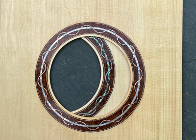 Ροζέτα και ρίγα πλάτης: Όστρακο mother of pearl + χρωματισμένη εποξική ρητίνη