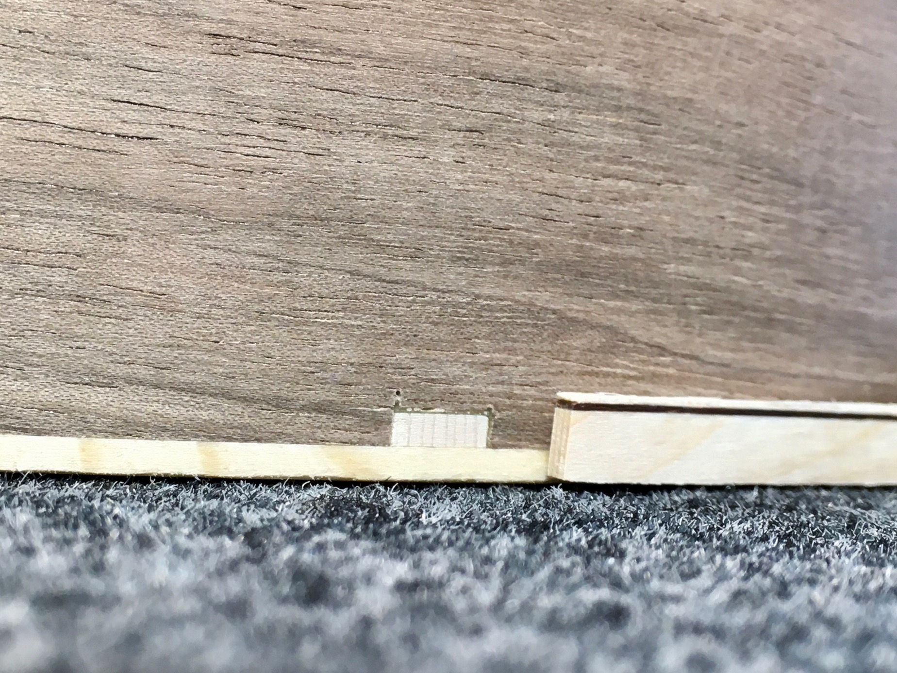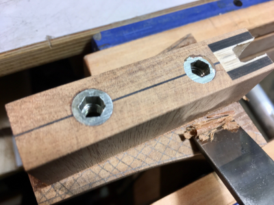 Εκεί που συναντώνται τα δυο πλαϊνά μπήκε μια σφηνοειδής ένθεση από έβενο. Το κανάλι για το σχετικό σκάψιμο έγινε με το ρούτερ με τη βοήθεια ενός καλουπιού που συνεργάστηκε πρόθυμα.
