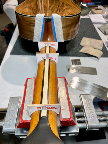 - ...μπορεῖ νά τοποθετηθῆ " ὄρθιο " σέ φαρδύ αὐλάκι , νά κολληθῆ στό ἕνα τοίχωμα τοῦ αὐλακιοῦ ἡ " καλή " του πλευρά μέ κυανοακρυλική , ν' ἀφαιρεθῆ τό ὑπόστρωμα , νά προστεθοῦν καί ἄλλα φιλέτα δίπλα του μέχρι νά γεμίση τό αὐλάκι , καί ὅταν θά τριφτοῦν νά δείξη τό ὄστρακο μιά λεπτή γυαλιστερή γραμμή πάχους 1 χιλ. ; Ἆραγε θά ἰριδίζει ὅπως καί ἡ " καλή " πλευρά του ; ( μόνο αὐτό , ὄχι νά δείχνη ὅπως ἡ " καλή ").