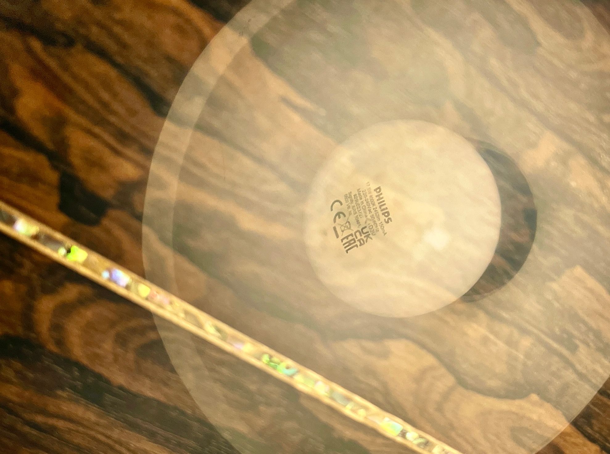 Το αποτέλεσμα με ικανοποίησε. Η φωτογραφία είναι από την πλάτη της κιθάρας και εστιάζει στα χαρακτηριστικά της λάμπας που καθρεφτίζεται στο βερνίκι!