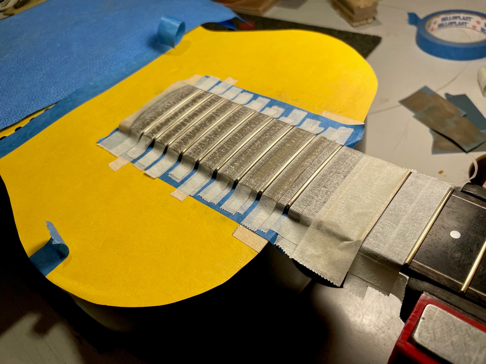 Με ένα τέταρτο στροφής στο truss rod με τη φορά των δεικτών του ρολογιού, το όργανο ξανα-τεντώθηκε ώστε να αποκτήσει και πάλι το ελάαχιστο ρελιέφ που συνήθως επιδιώκω και σταθεροποιήθηκε στην (κατά πάσα πιθανότητα) τελική του θέση.