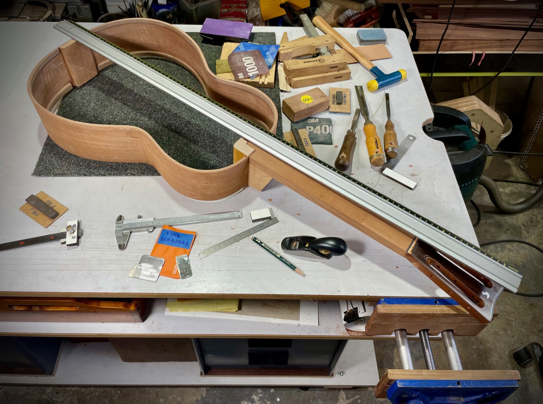 Από τον αρραβώνα μάνικου-σκάφους. Πλαϊνά και πλάτη από παμπάλαιο μαόνι Ονδούρας (Στέλιο δημόσιες ευχαριστίες!)
