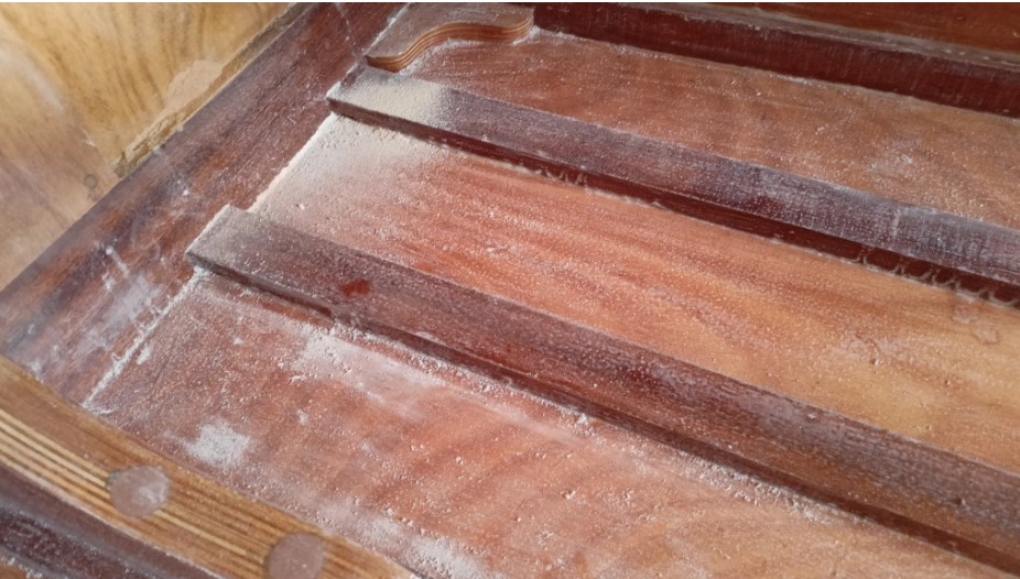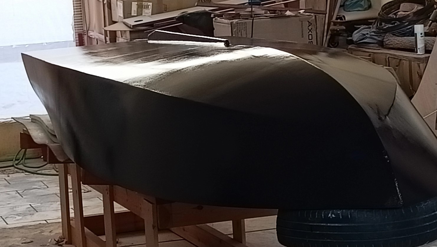 Επόμενη εργασία το περασμα δεύτερου χεριού ρυτίνης εσωτερικά. Για να γίνει όμως αυτό έπρεπε να γυαλοχαρτιστεί όπου είχε περαστεί το πρωτο χέρι. Η ρυτίνη θα περαστεί μόνο στα σημεία που δε θα φαίνονται. Στα σημεία που θα φαίνονται θα περαστεί με τον σκληρυντή 207 που δίνει πολυ πιο όμορφο αποτέλεσμα και έχει και καλύτερη προστασία UV. Εννοείται πως χρειάζεται και λούτερο μετά.