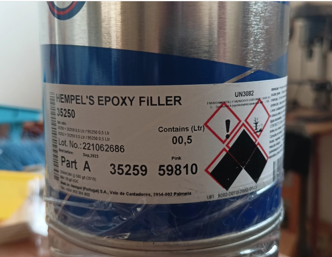Στη συνέχεια καθαριστηκε με νερο η γαστρα και αφου στεγνωσε καθαριστηκε με το ειδικο διαλυτικο του εποξικού ασταριου. Για το πρωτο χέρι ασταριου χρησιμοποιήθηκε ολη η συσκευασια 750ml. Στο μιγμα προσθέτηκε 2% διαλυτικο.  Θερμοκρασία χώρου 26,5 βαθμοί κελσίου. Υγρασία 50%. Ρολό μοχέρ
