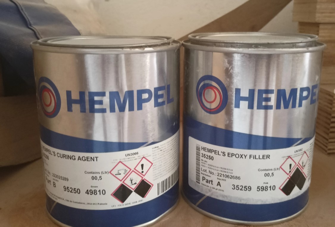 Αφού τελείωσαν και αυτές οι εργασίες ήρθε η ώρα να περαστεί όλη η γάστρα με εποξικό στόκο δύο συστατικών για να κλείσουν και οι τελευταίες μικροατέλειες που έχουν μείνει από το υαλοΰφασμα. Ίσως αν πέρναγα δύο με τρία χέρια ακόμα ρητίνη να φεύγανε, αλλά νομίζω ότι με τον στόκο θα γίνει σίγουρα πιο εύκολα η δουλειά. Αν είχα επιλέξει να περαστεί μόνο με λούστρο και όχι με χρώμα το σκάφος στα πλάγια, τα τρία χέρια ρητίνης θα ήταν μονόδρομος. Ξεκίνησα από τον καθρέφτη που έχει το μεγαλύτερο πρόβλημα και έχει και μικρή σχετική επιφάνεια για να κάνω τις δοκιμές μου