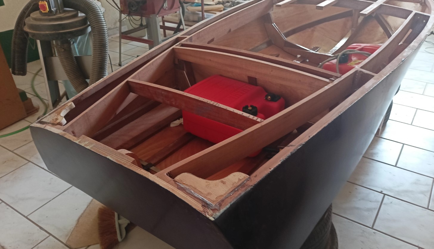 Η αγορά έγινε πολύ νωρίς γιατί θα πρέπει να αρχίσω να σκέφτομαι την εγκατάσταση του συστήματος διεύθυνσης, του ταμπλό με το πολυόργανο, και το μέγεθος της τρύπας στο πίσω μέρος του σκάφους ώστε να μπορεί να κινείται όπως πρέπει η εξωλέμβια με τα καλώδια και να μπορεί να σηκώνεται χωρίς να βρίσκει στα ξύλα. Ενα πρόβλημα που θα πρέπει να λύσω είναι πως θα πηγαίνω στο πίσω μέρος του σκάφους για να την σηκώνω. Σκέφτομαι το ντουλαπάκι να μην ανοίγει προς τα πίσω, αλλά προς τα πλάγια για να μην ενοχλεί.