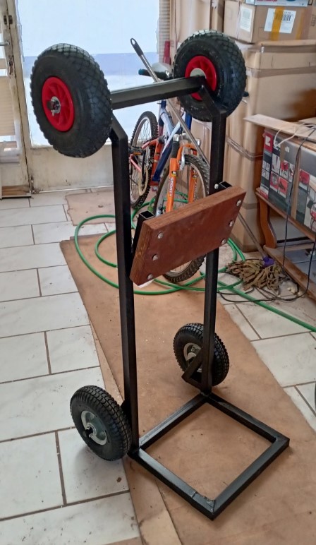 Το σκάφος έχει τουμπάρει ξανά για να συνεχίσω τις εργασίες εσωτερικά. Παράλληλα με αυτές τις εργασίες φτιαχτηκε μια βάση για την εύκολη μεταφορά της εξωλέμβιας με το αυτοκίνητο αλλά και μέσα στο εργαστήριο. Κάτι σαν την παρακάτω.