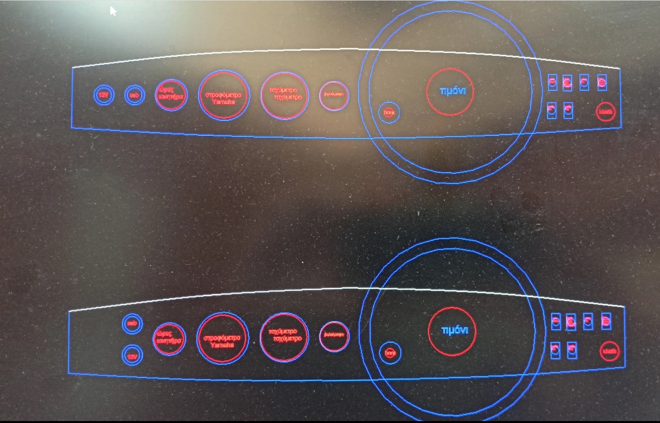 Παράλληλα με τις εργασίες στο πίσω μέρος του σκάφους άρχισα να σκέφτομαι την μορφή του ταμπλό. Πώς θα είναι η διάταξη των οργάνων.