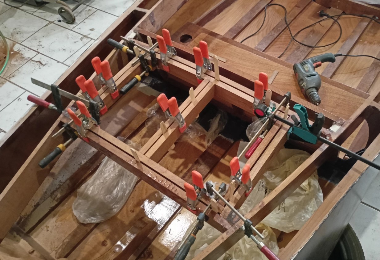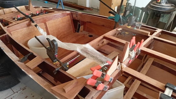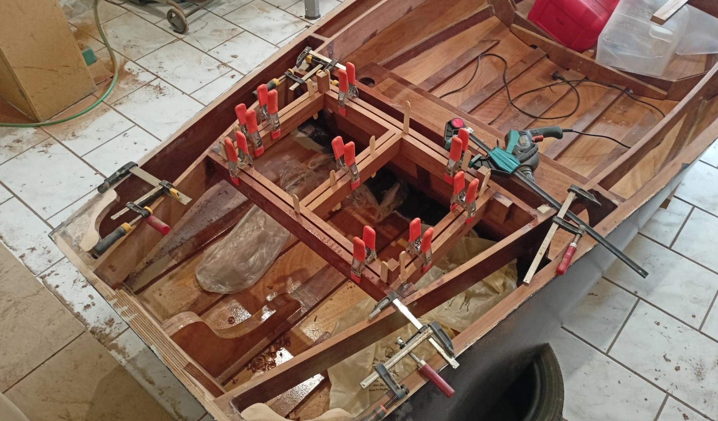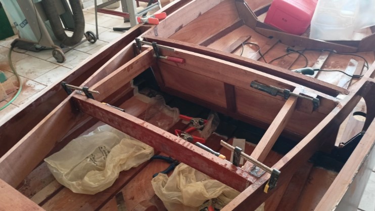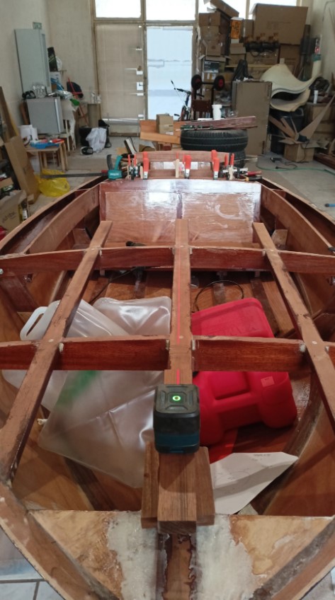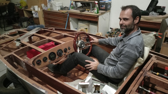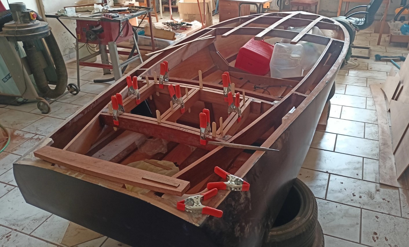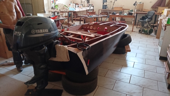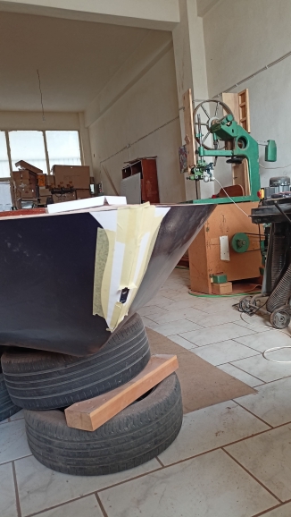 Για να υπολογιστούν οι διαδρομές και τα μήκη των καλωδίων, τοποθέτησα την εξωλέμβια πάνω στο σκάφος