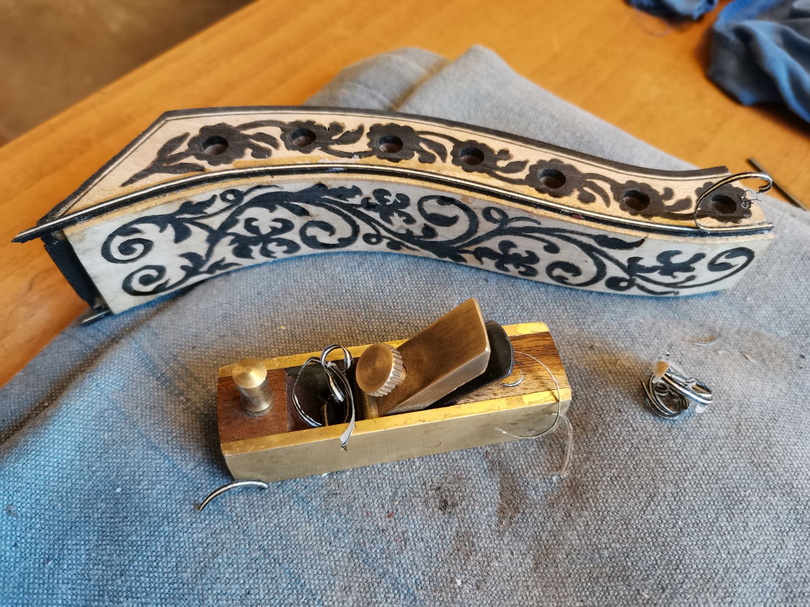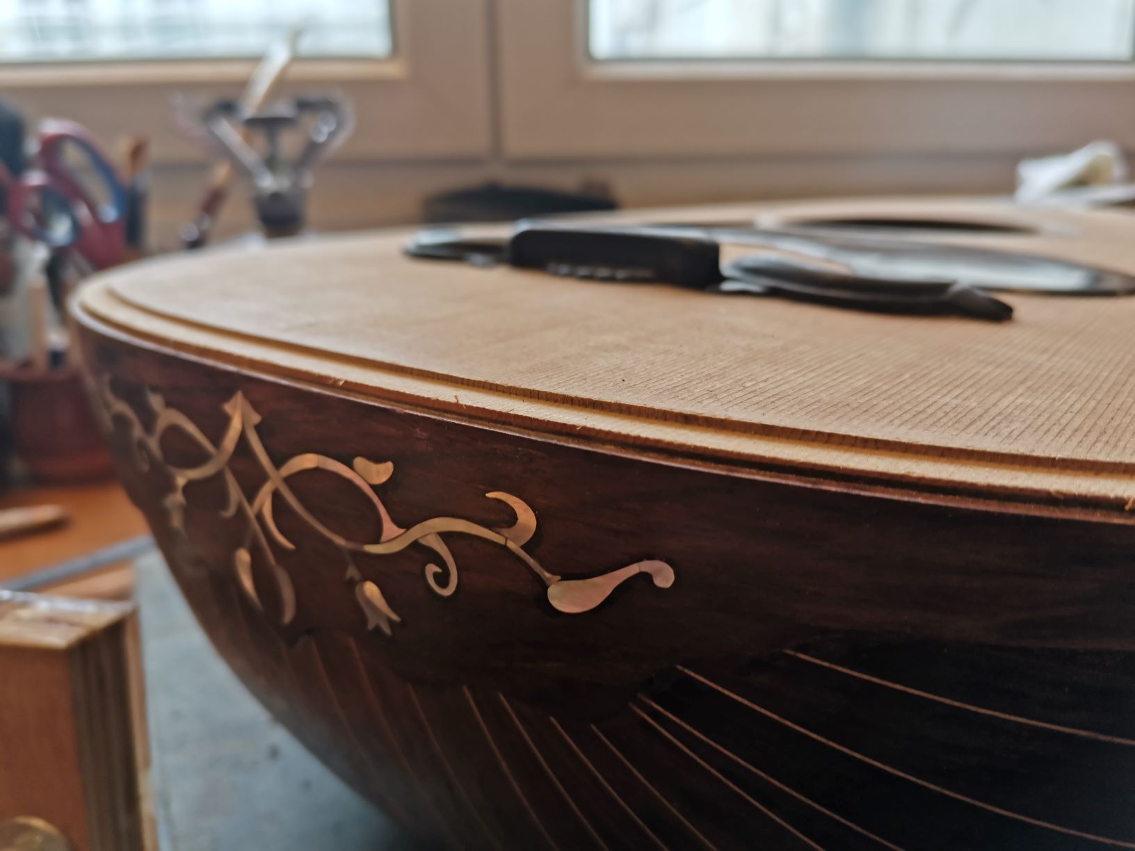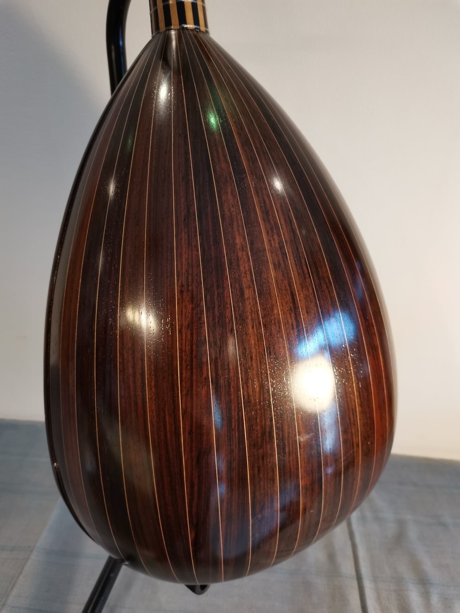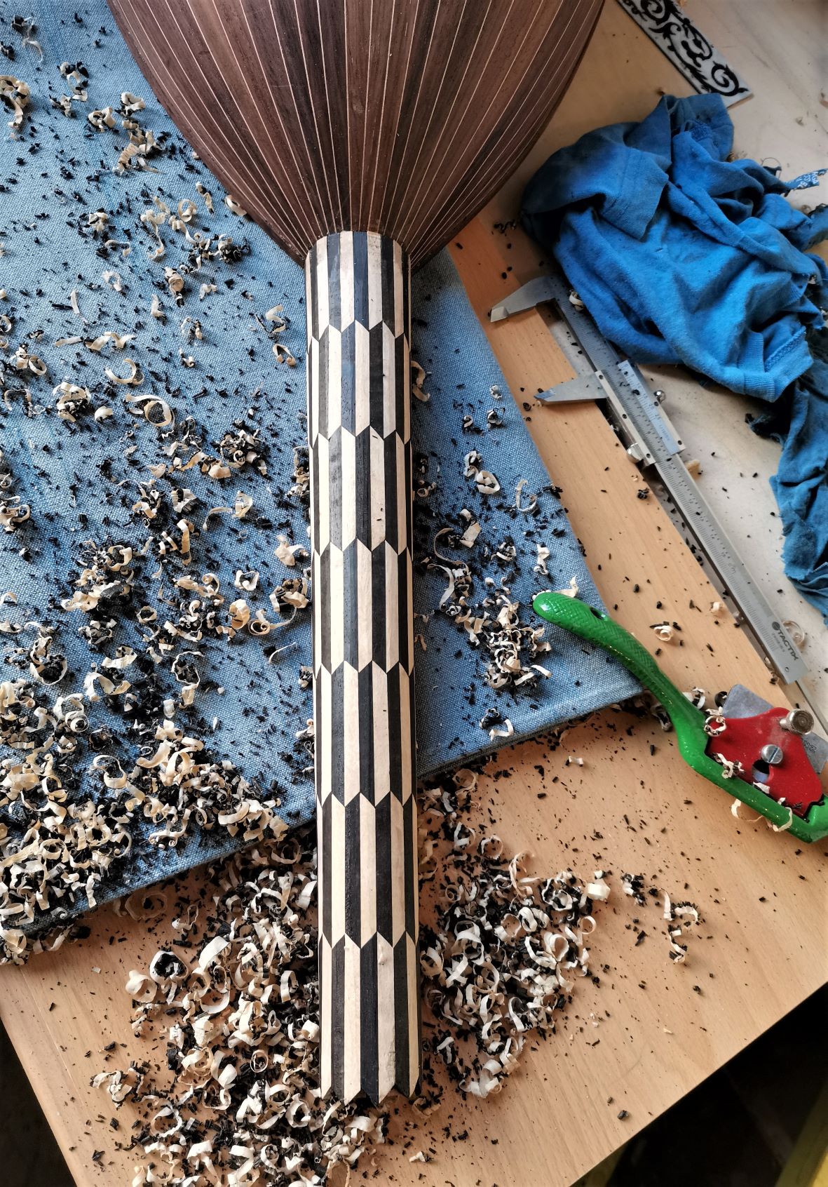 Καλημέρα στην κοινότητα! Έπειτα απο αρκετό καιρό κατάφερα και τελείωσα την 3η μου κατασκευή. Ενα πολίτικο λαούτο (λάφτα) βασισμένο στην αισθητική του Εμμανουήλ Βένιου (Manol). Παρουσιάζω τελειωμένο το όργανο αλλά θα χαρώ να μοιραστώ πληροφορίες και φωτογραφίες απο οποιοδήποτε σταδιο της κατασκευής. Σκάφος απο ινδικό παλλίσανδρο με καπάκι κέδρινο. Tαστιέρα και κολάντζα απο λευκό όστρακο και ινδικό παλίσανδρο. Διακόσμηση του μπράτσου και του κλειδοθέσιου (Καράολου) απο έβενο και σφένδαμο. Κλειδιά απο λευκό πυξάρι (Boxwood). Ροζέτα και πεναριά απο κέρατο. Γέφυρα και κεφαλή κλειδοθέσιου (παγώνι) σκαλιστή απο έβενο.