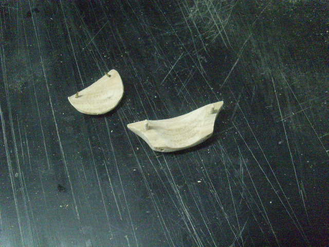 Στην συνέχεια τα δυο κομματια τριφτήκαν με την χειροκίνητη τριβιέρα στα 6 mm . Διαμορφώθηκαν , χαράχθηκαν , οπλίστηκαν . Στην μια μπηκαν κουμπια ξύλινα ( απο καπλαμαδακια ) , ενω η αλλη πυροδιακοσμηθηκε με το κολλητήρι , οπως και η χορδοκαλύπτρα ( μακαρι να ειχα πυρογραφο ) . Τα αποτελεσματα :