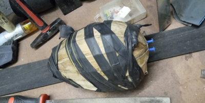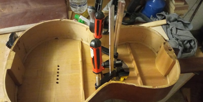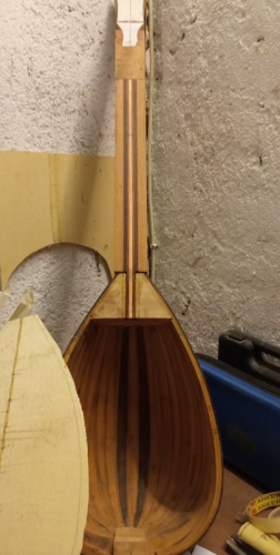 Αργά και σταθερά προχωράει το μπουζούκι που μέχρι στιγμής κι όλως περιέργως δεν έχει γίνει καμία μ@λ@κι@, χτες κόπηκε καπάκι ΑΑ και καμάρια απο παλιό ελάτινο δοκαράκι (μέρος παλιού τραπεζιού).