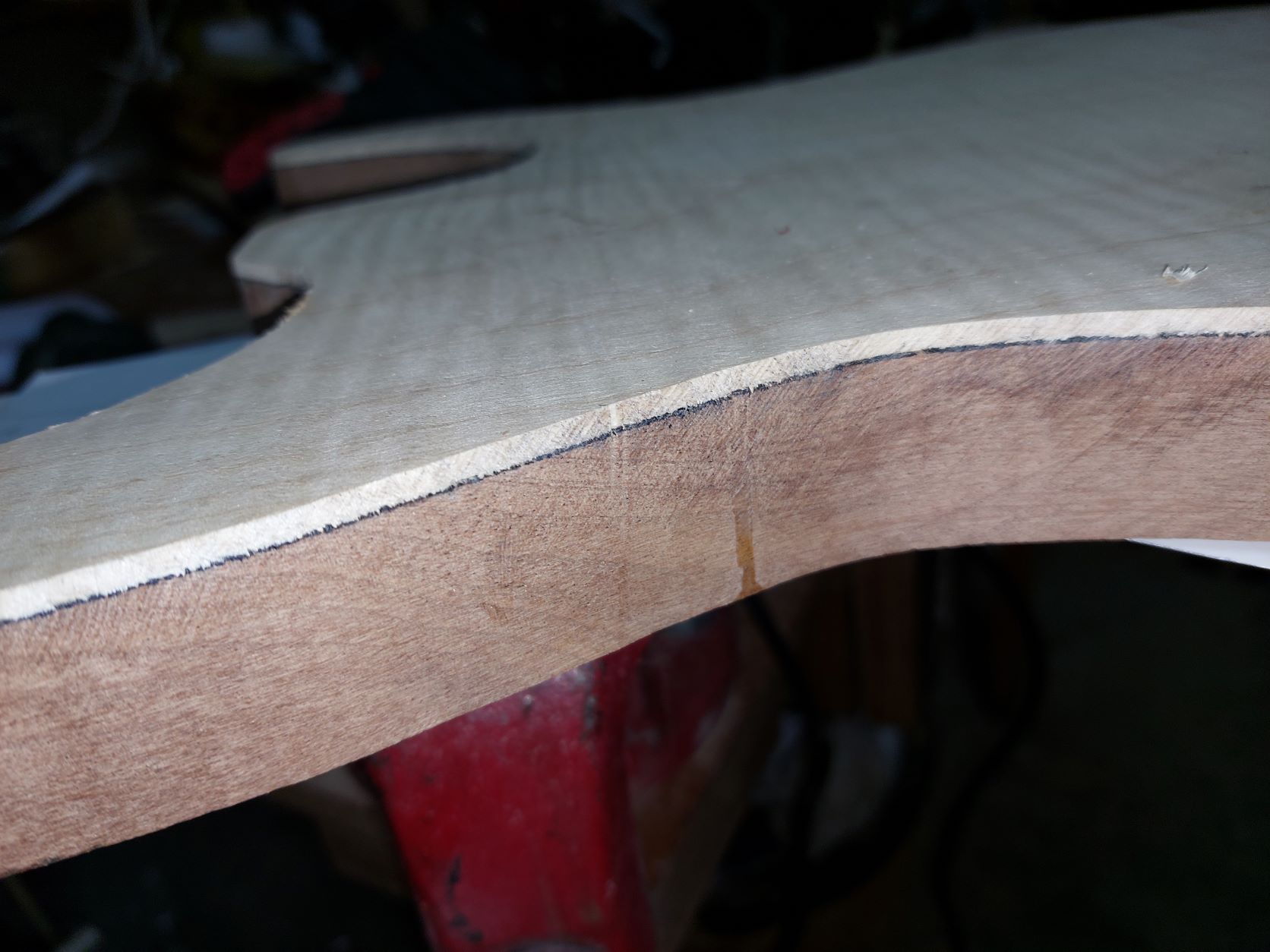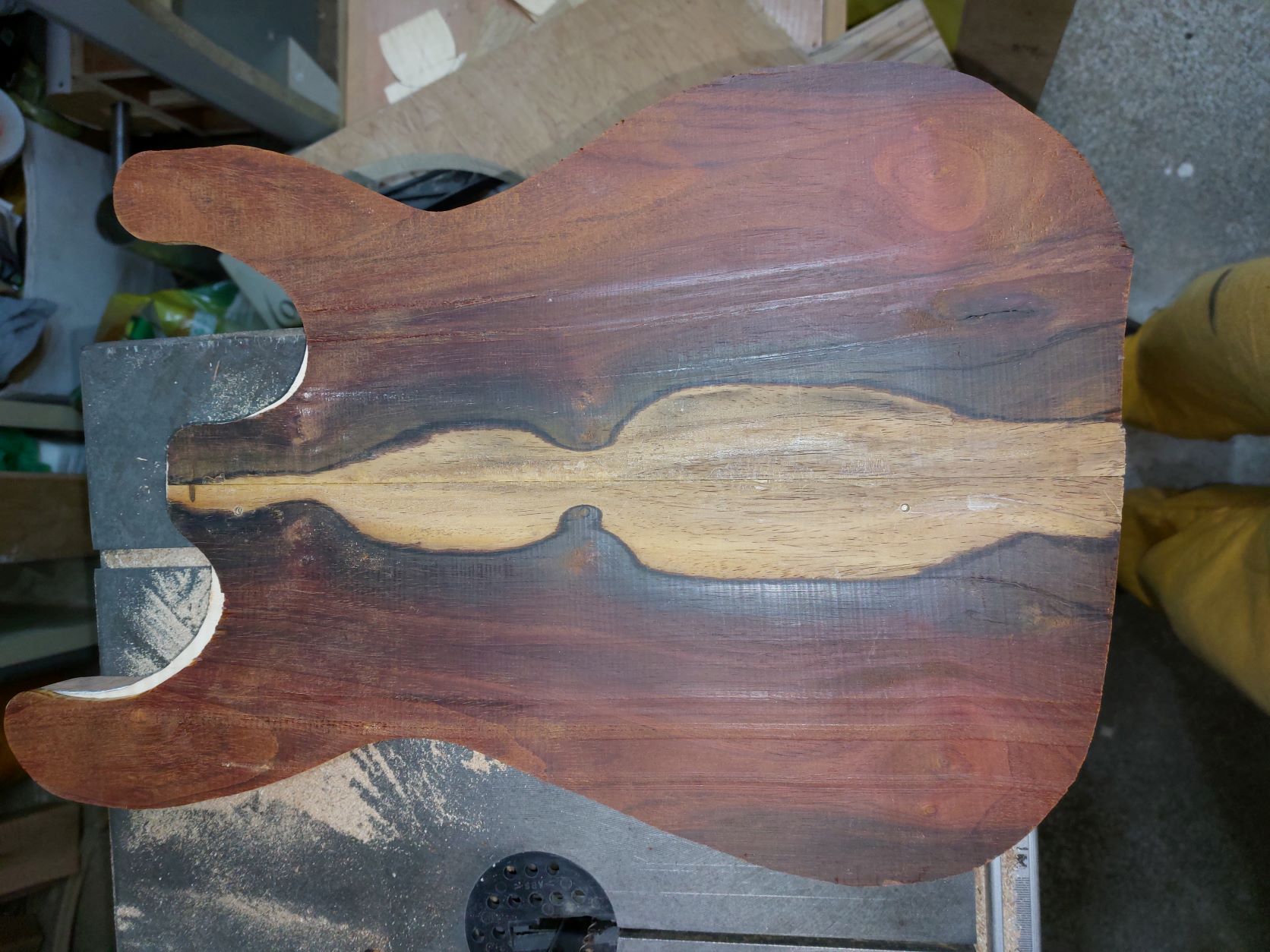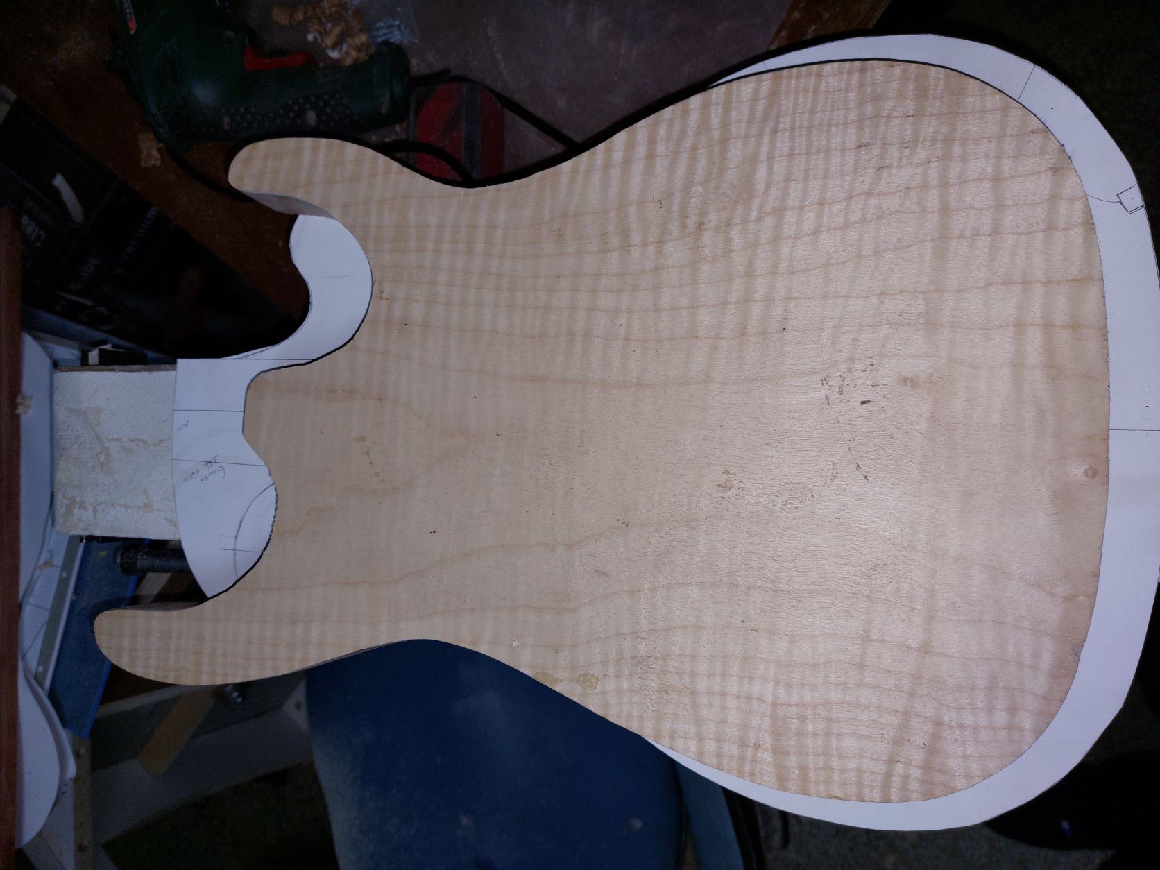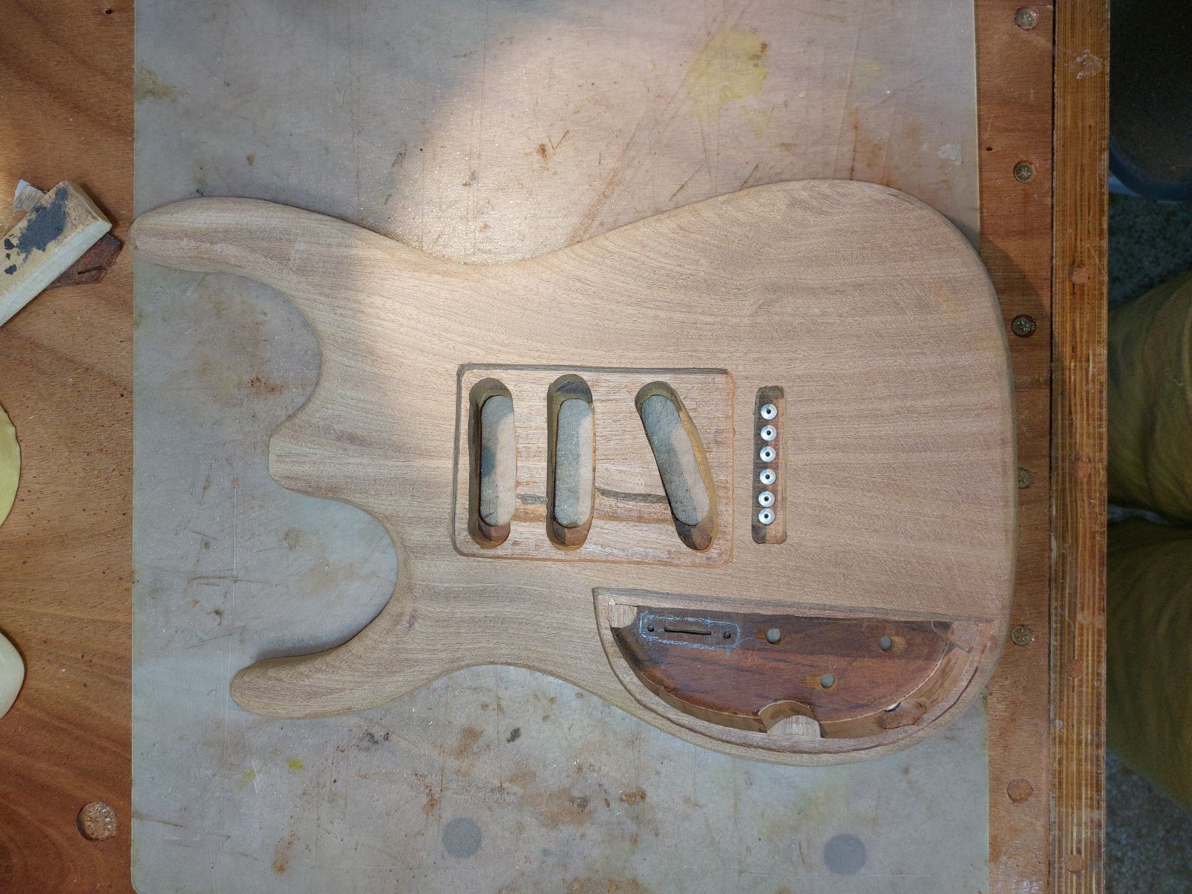 Προχωρήσα λίγο και αυτήν την κιθάρα. Αφού σκαφτήκαν με ρούτερ οι υποδοχές για μαγνήτες και ηλεκτρικά στο σώμα, δημιουργήθηκε κενό και συμμετρικά της υποδοχής του χώρου των ηλεκτρικών για να ελαφρύνει το σώμα. Η κατασκευή διαφέρει από την κλασσική της stratocaster, καθώς στην stratocaster στο σώμα τα ρουταρίματα για τους μαγνήτες δεν είναι διαμπερή όπως τα έκανα εγώ, αλλά μπαίνει πλαστικό καπάκι στο οποίο προσαρμόζονται όλα τα ηλεκτρικά.