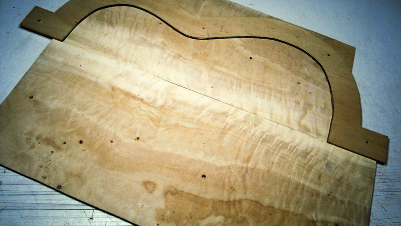 Οπότε σκέφτομαι να βάλω ενδιάμεσα μια σφήνα, είτε άλλο εντελώς ξύλο είτε απο το ίδιο κομμάτι με δυο φιλετάκια λεπτά μαύρα ενδιάμεσα. Δεν έχω αποφασίσει ακόμα. Αν βάλω από το ίδιο μάλλον θα το βάλω "ανάποδα" (το πάνω-κάτω δηλαδή όπως φαίνεται σχεδιασμένο με το μολύβι) για να έχουν αντίθεση τα νερά