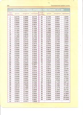 Λοιπόν ύστερα από αρκετή μελέτη του τύπου που έδωσε ο φίλος theodoropoulos ,έψαξα και βρήκα τον πίνακα των τριγωνομετρικών αριθμών που είναι απαραίτητος, για να μετατρέψουμε την εφαπτομένη σε μοίρες για την κλίση του μπράτσου.