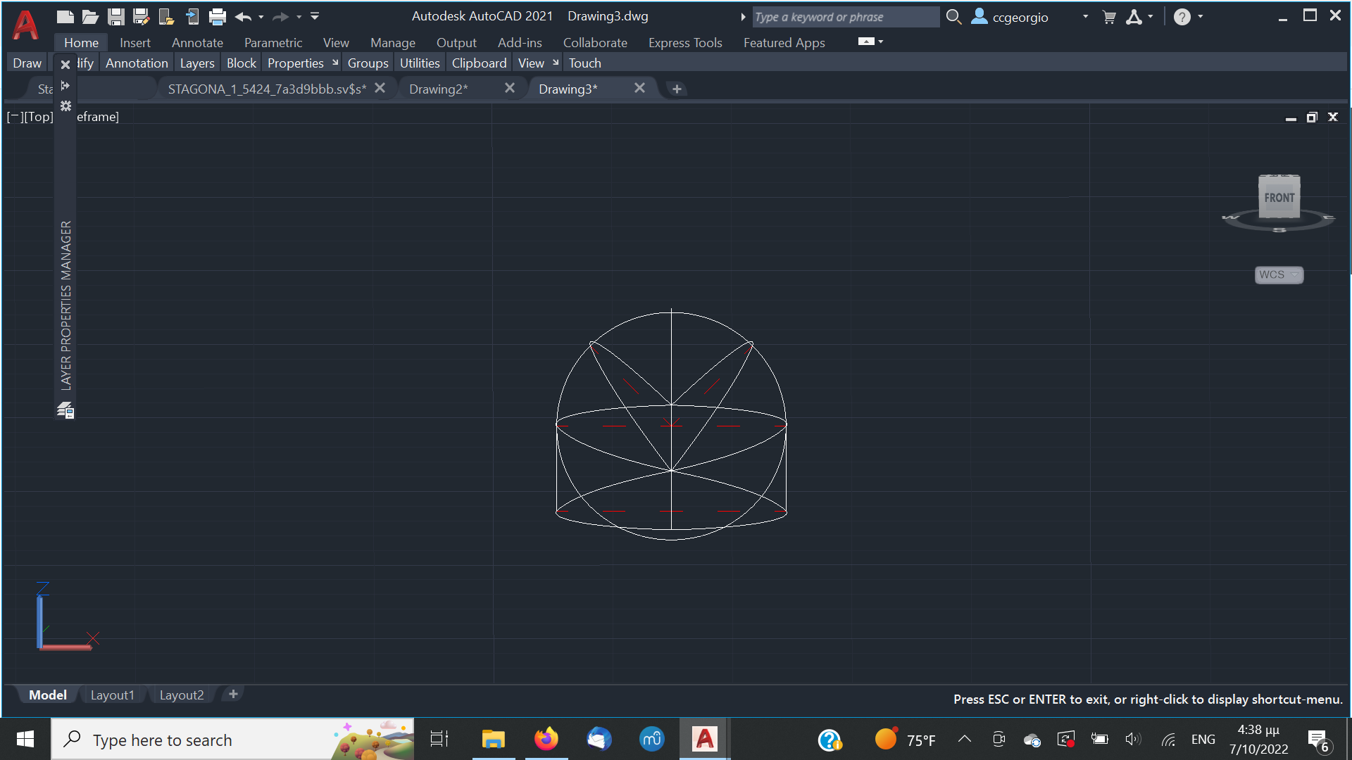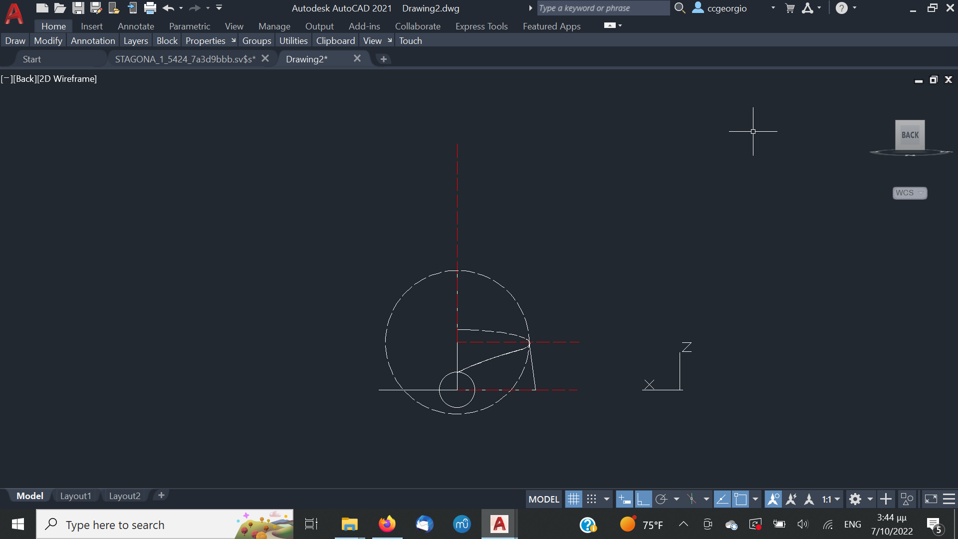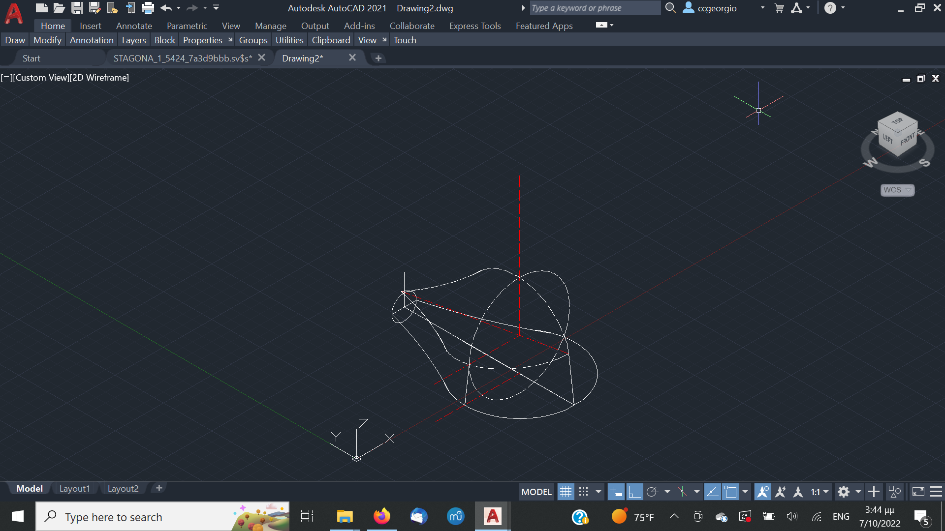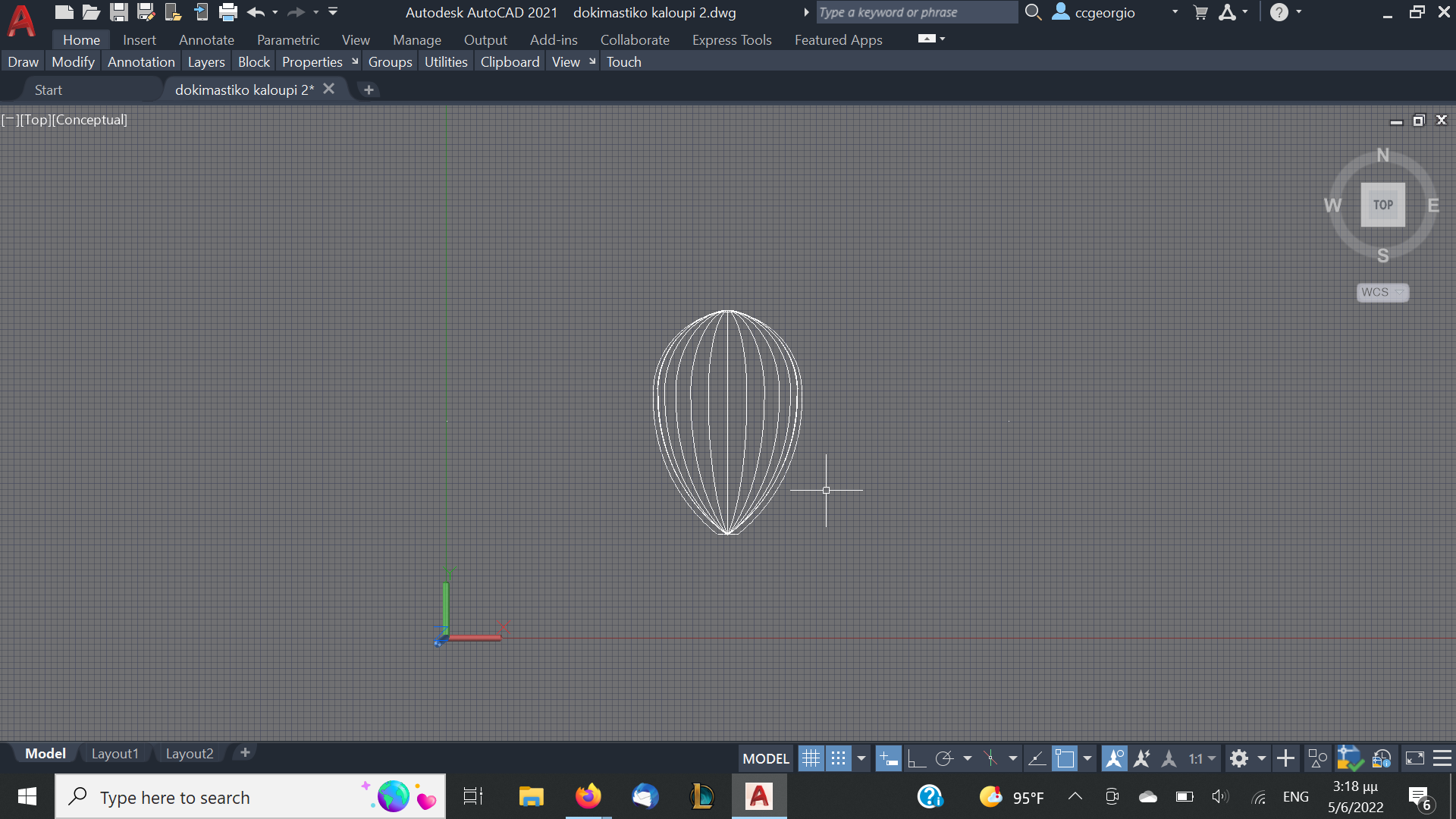 Αφού αφήσουμε τις κόλλες να στεγνώσουνε καλά το καλούπι θα πάρει την μορφή με τις πολλές γωνίες. Ένα ακόμα σημείο που πρέπει να αναφέρουμε είναι πως το καλούπι για να δουλεύται πρέπει να μπορεί να σταθεροποιηθεί σε μέγκενη. Για τον λόγο αυτόν από την κάτω μεριά του κόντρα πλακέ έχει βιδωθεί ένα ξύλο μακρόστενο και το καλούπι πλέον σταθεροποείται πλέον άνετα σε μέγκενη. Τώρα λοιπόν, με το πριόνι και με οδηγό τον εγκάρσιο νομέα, κόβουμε ότι περισσεύει από το πάνω μέρος. Αντίστοιχα ''ξυρίζουμε'' περιμετρικά του σκάφους ότι περισεύει και από εκεί. Για ναφέρουμε στην τελική του μορφή το καλούπι, πλέον θα δουλέψουμε με χοντρή ράσπα. Μια βασική αρχή που πρέπει να έχουμε πάντα υπόψη μας στην κατασκευή είναι ότι για να διατηρηθεί το σχήμα που αρχικά σχεδιάσαμε, θα πρέπει σε όλη την περίμετρο του τεταρτοκύκλιου το κάθε κομμάτι θα πρέπει να κρατηθεί ανέπαφη η περίμετρος στο σημείο που σχεδιάσαμε και το υπόλοιπο να σβήσει μέχρι την σχεδιασμένη περίμετρο του επόμενου κομματιού.΄Ποως φαίνεται στο σχέδιο αφαιρούμε την κόκκινη περιοχή. συγκεριμένα για τα κομμάτια Α και Β, το Β στο σημείο 3 δεν το κατεβάζουμε, αλλά στο υπόλοιπο μέρος φτάνουμε στο σημείο 2 όπου είναι η περίμετρος το κομματιού Α.