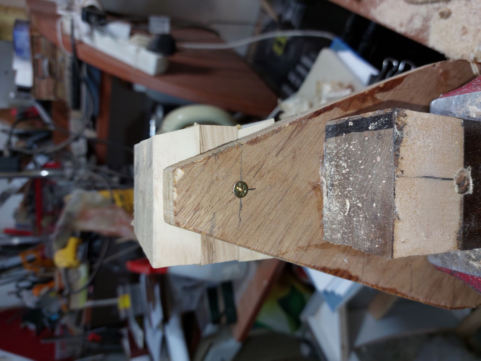 Ο τάκος πρέπει να σταθεροποιηθεί στο καλούπι με μία βίδα από την κάτω μεριά του καλουπιού. Αφού κολλήσουμε τα κομμάτια του τάκου μεταξύ τους, τον σταθεροποιούμε στο καλούπι και τον διαμορφώνουμε με πριόνι, ράσπα, λίμες και γυαλόχαρτα όπως κάναμε και με το καλούπι. Προσέχουμε να μην λερωθεί με το σαπoύνι γιατί πάνω του πρέπει να κολλήσουν οι ντούγες.