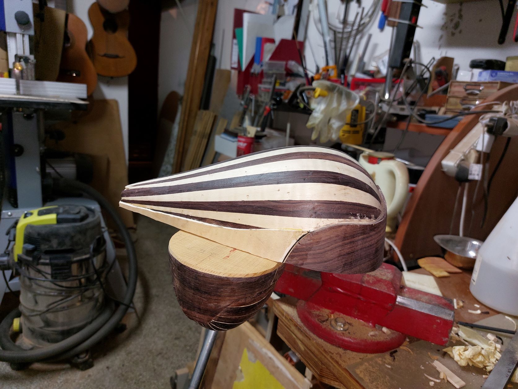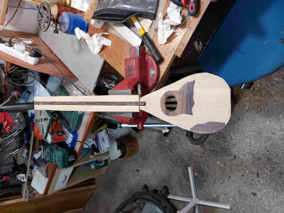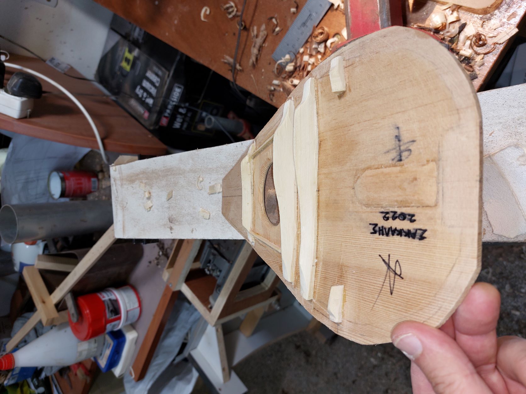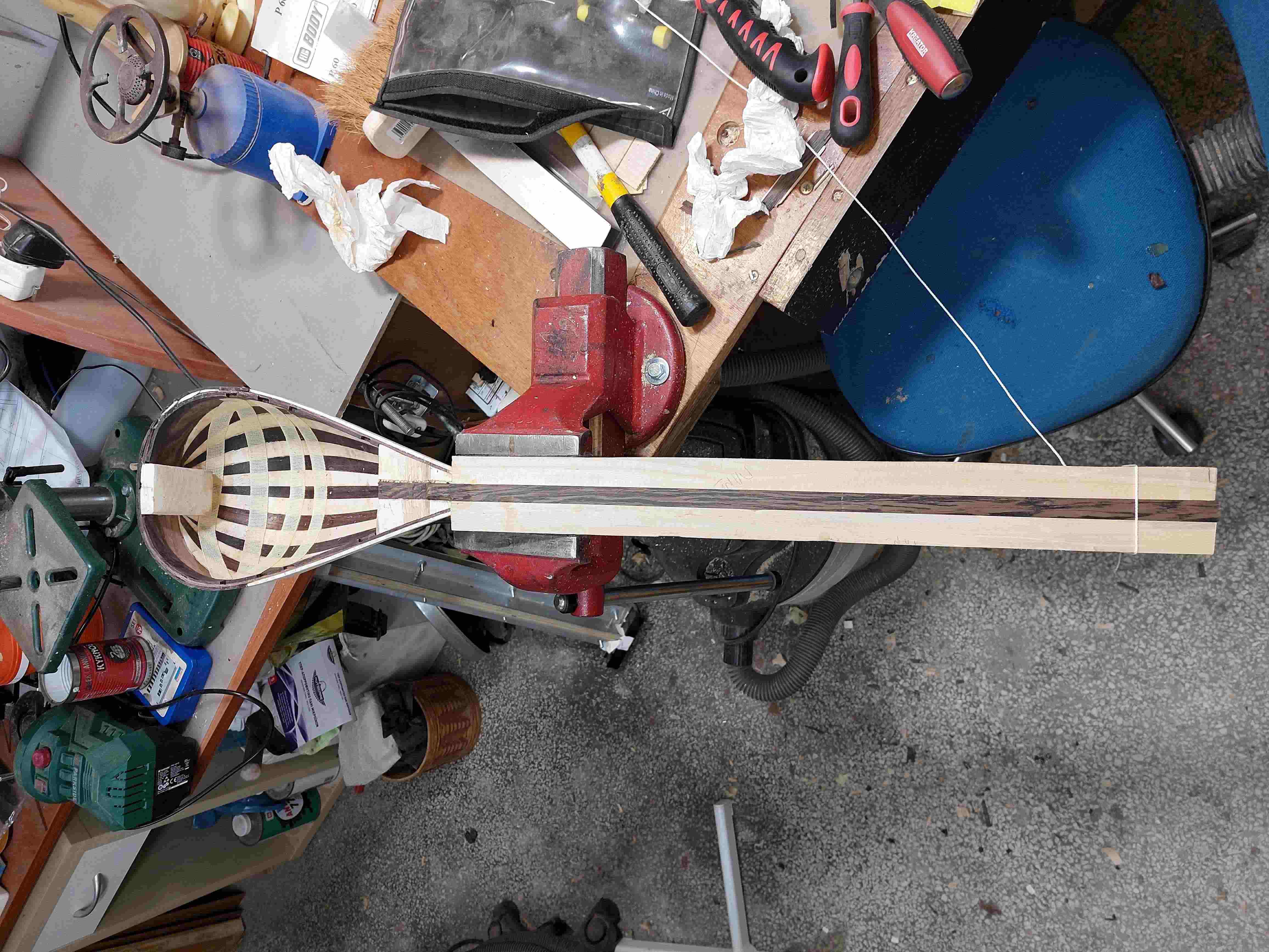Κολλήθηκαν και τα ξύλα για το μάνικο. Κεντρικά βέγκε για κόντρα και απ'έξω φλαμούρι.