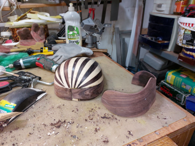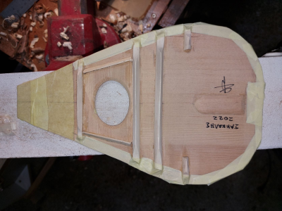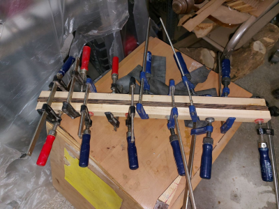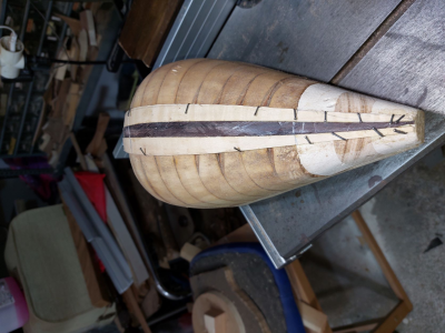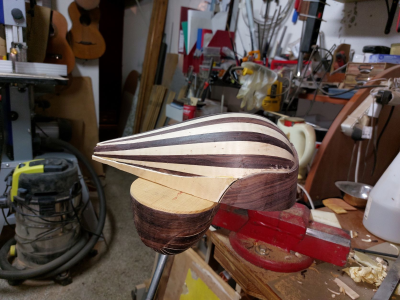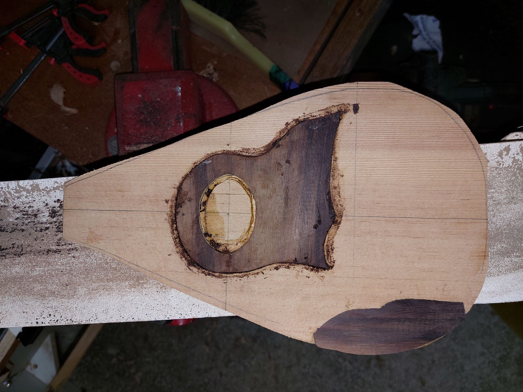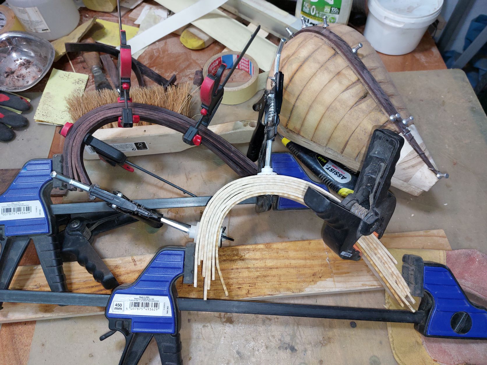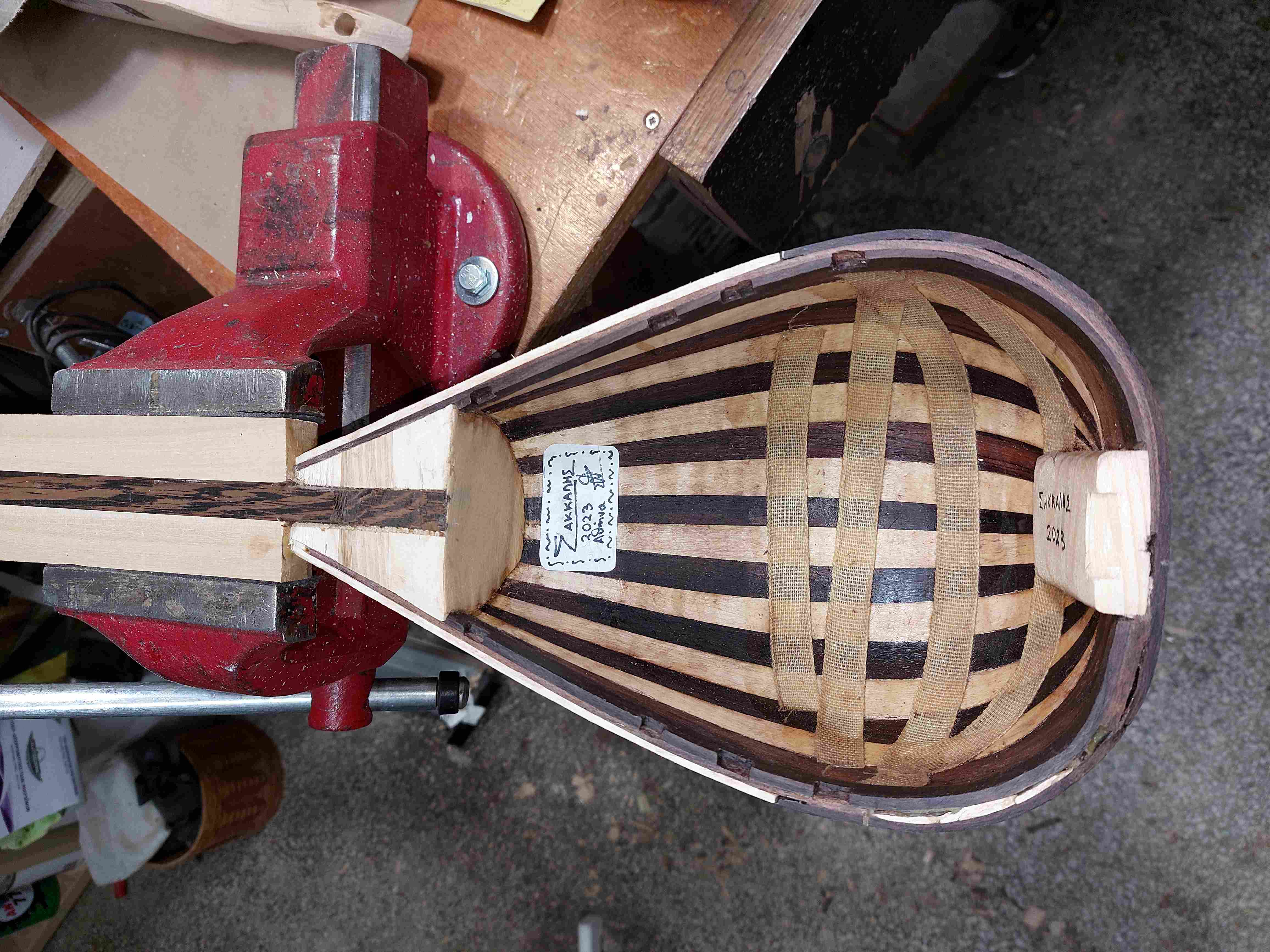 Κολλήθηκαν και τα ξύλα για το μάνικο. Κεντρικά βέγκε για κόντρα και απ'έξω φλαμούρι.