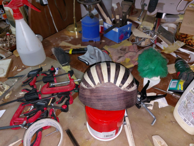 Αφού μορφοποιηθήκαν τα καμάρια από φλαμούρι τριφτήκαν και όλο το καπάκι περάστηκε 2 χέρια γομαλάκα εξού και η φωτογραφία με την ταινία περιμετρικά.