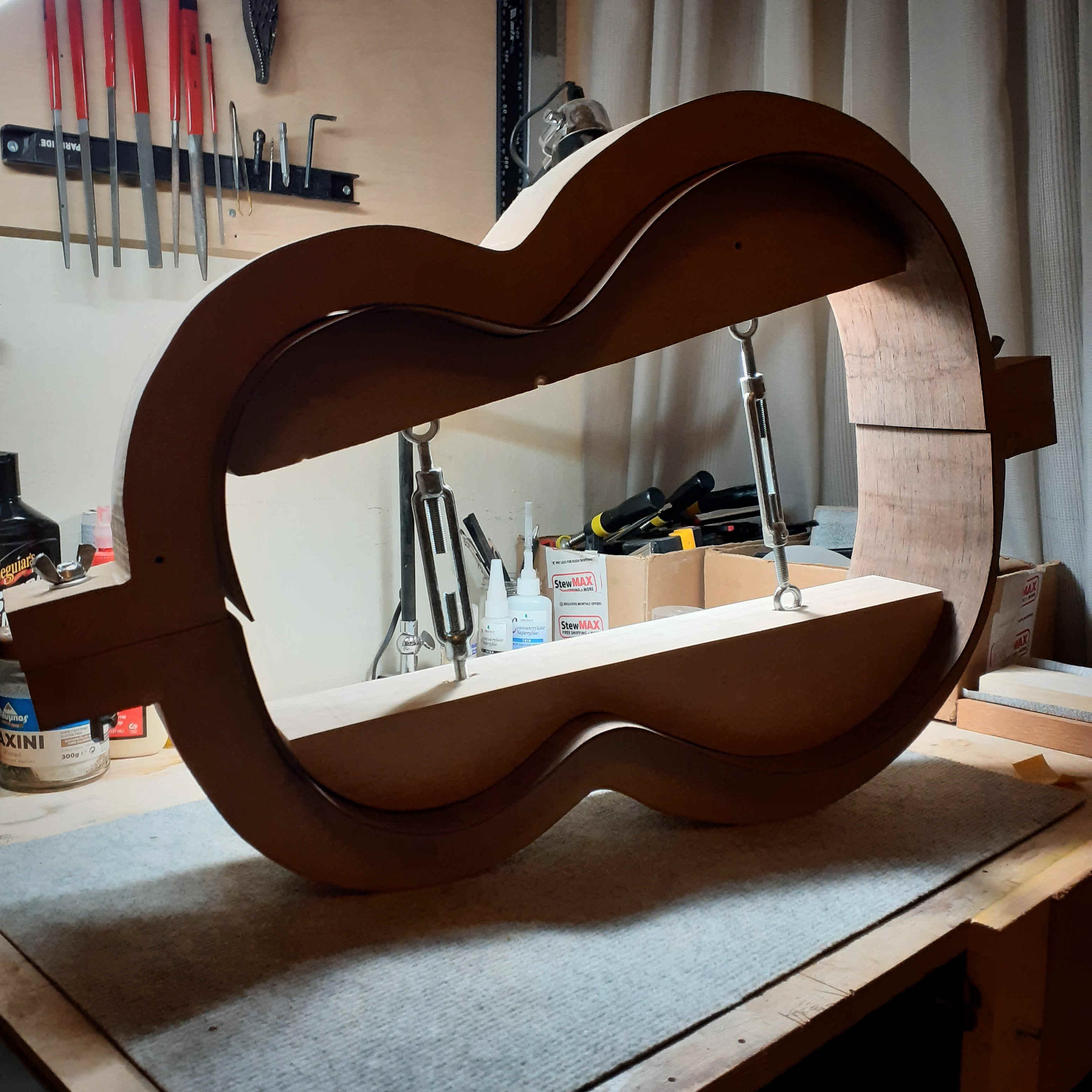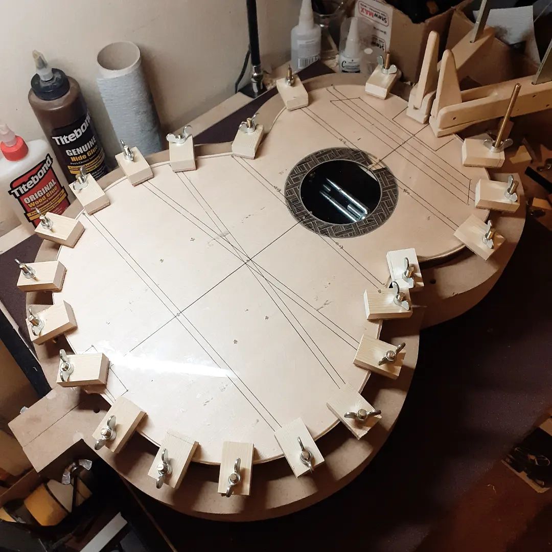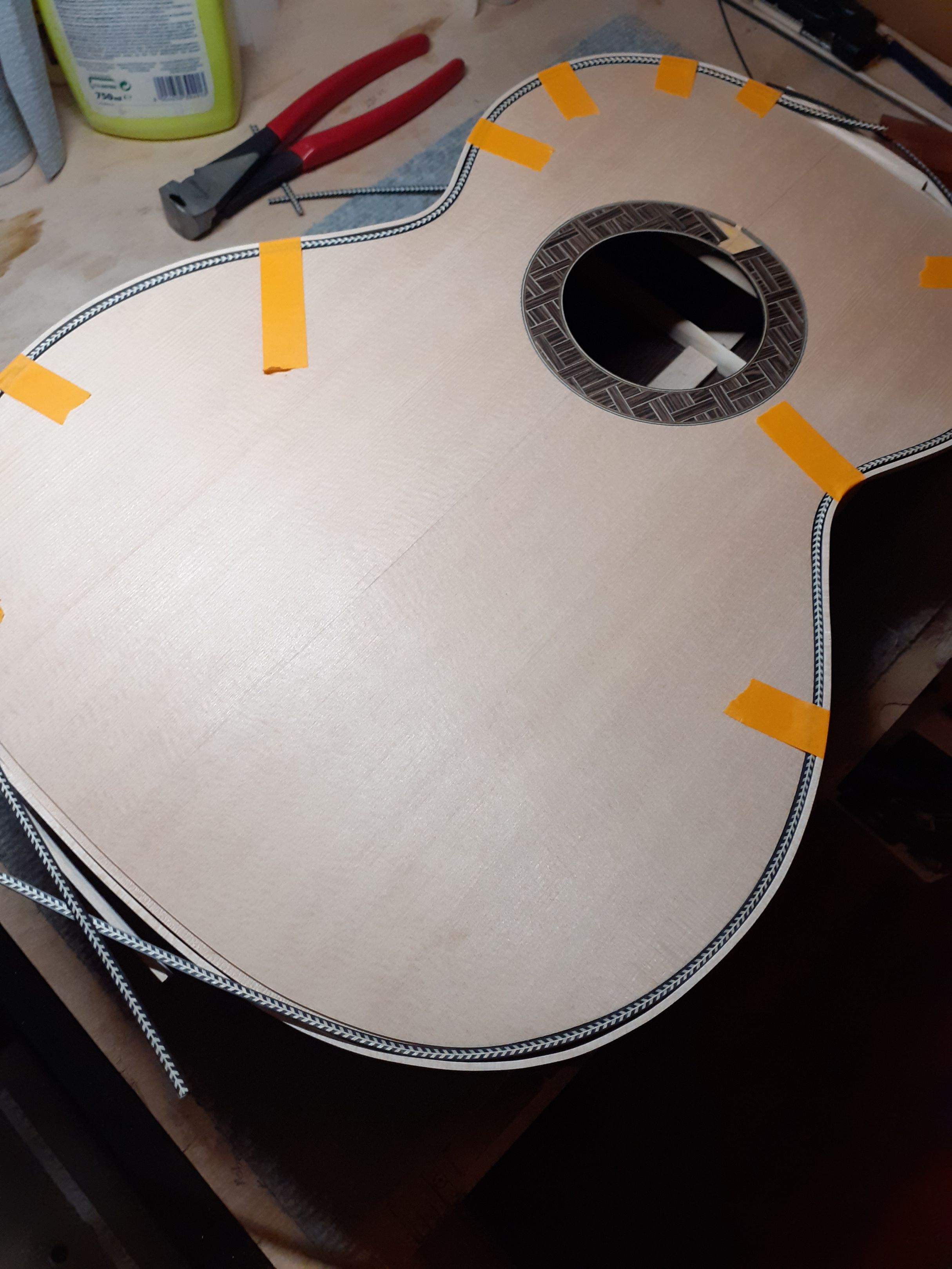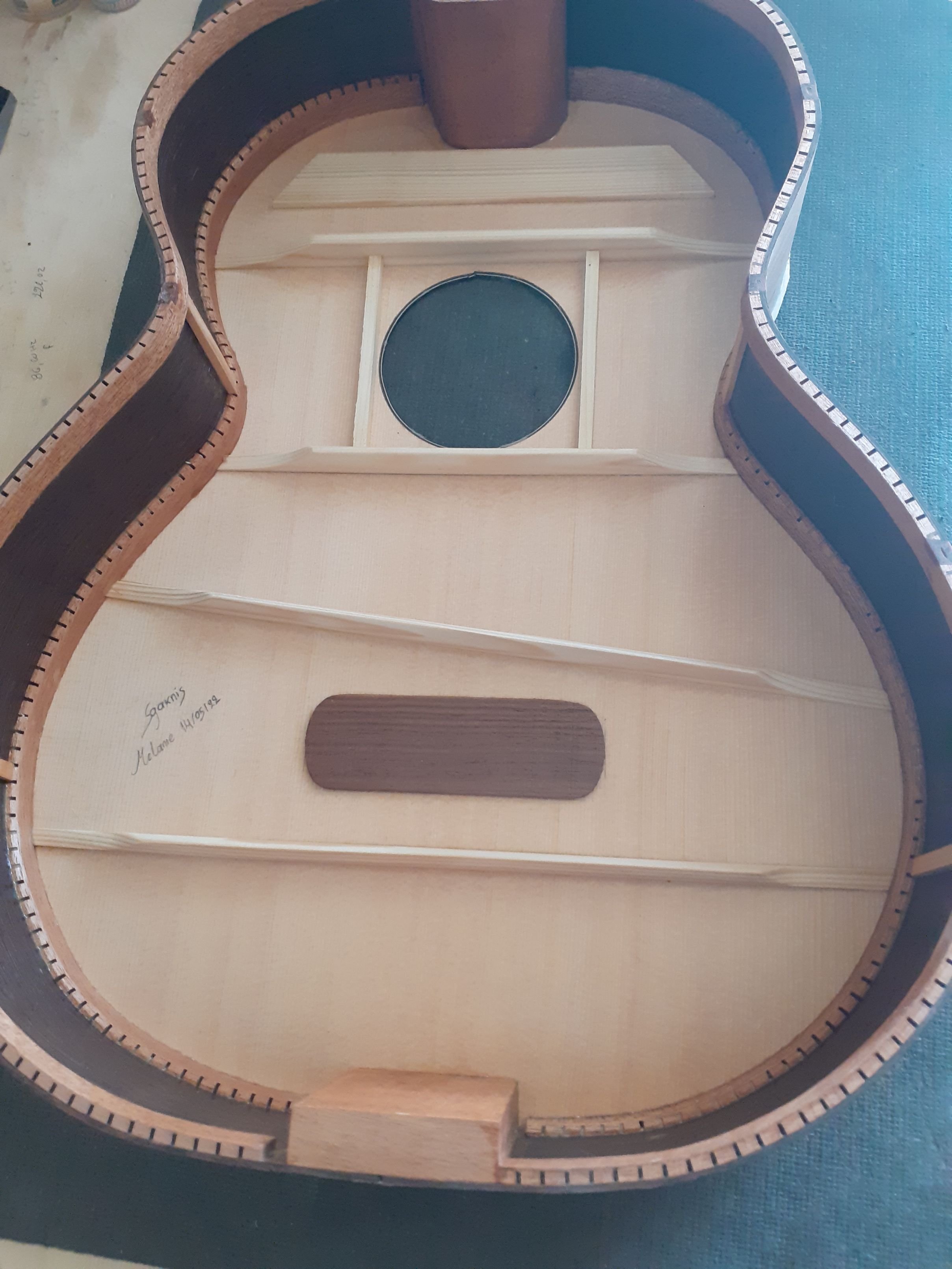 Λαική κιθάρα - κιθαρονι. Πλατη/πλαινα βέγκε καπάκι 3Α sitka spruce. Εδω τα πρωτα σταδια κατασκευης - πλατη, πλαινα, ροζετα.