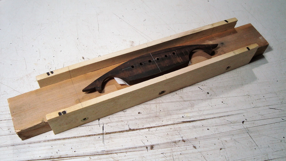 Για να έχω όμως δυνατότητα να μετρήσω σωστά, θα ήταν καλό να έχω διαθέσιμες τρεις - τέσσερις κιθάρες υπό κατασκευή, με κολλημένα όλα πλην του καβαλάρη, κι αυτό βέβαια είναι δύσκολο να συμβεί. Ε, τώρα βρέθηκε η ευκαιρία, εν όψει της έκθεσης έχω ...τρισήμιση κιθάρες σ΄αυτήν την κατάσταση. Όλα τα μοντέλα μου έχουν την ίδια καμπυλότητα στα καπάκια, οπότε το jigάκι δουλεύει για όλες τις κιθάρες (έλεγχος στις υπο κατασκευή: μια μικρή, μια μεσαία και δυο μεγάλες)