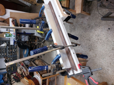 Η κόντρα ήταν ψηλότερη και αφού στέγνωσαν οι κόλλες ξυρίστηκε το πλεονάζον μέρος. Κάποια μικρά κενά από τυχόν φυσαλίδες γεμίστηκαν με κυανοακρυλική και σκόνη ξύλου.