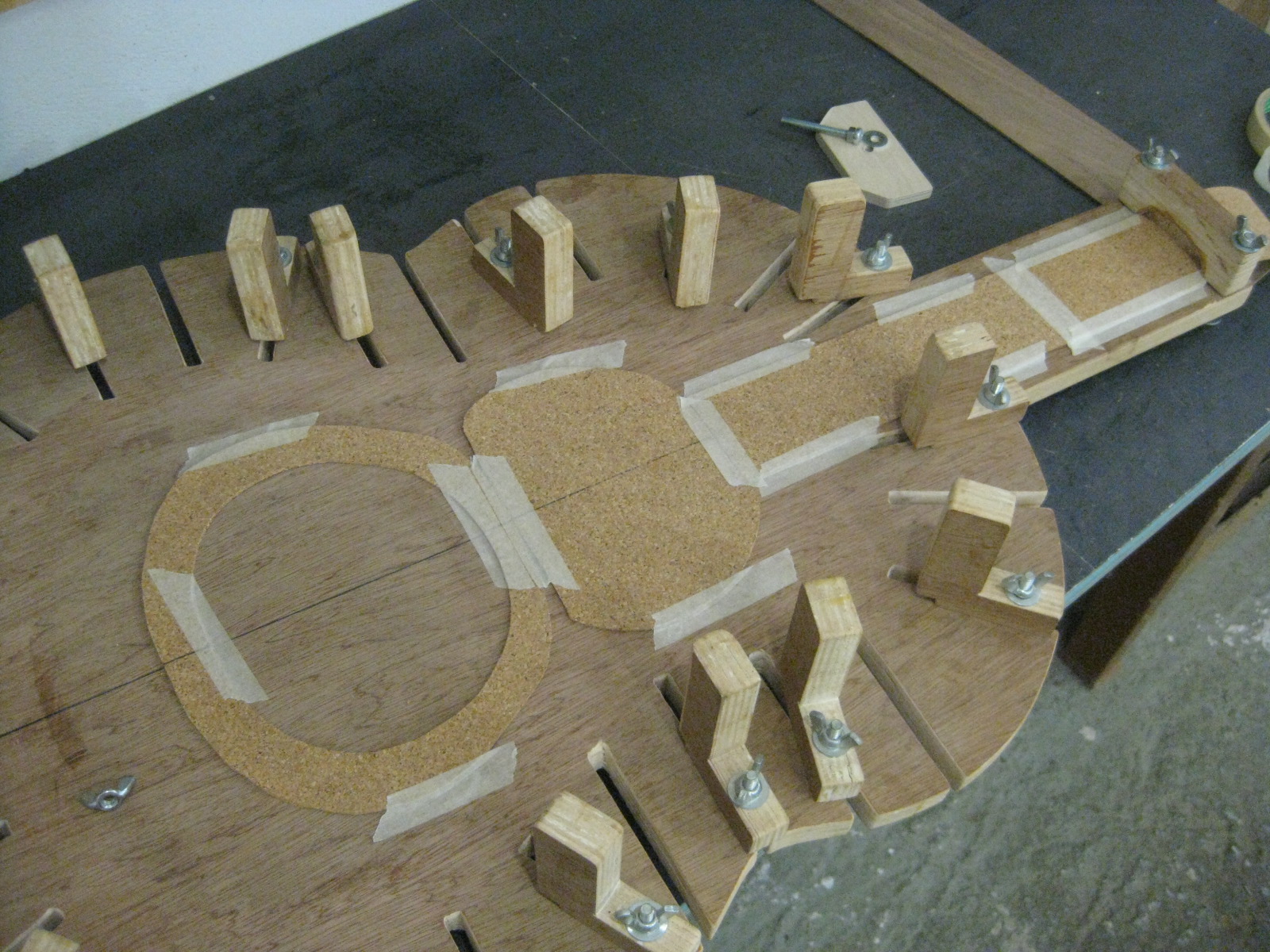 -το αυτο και πισω στη καταληξη για τη μεση του καπακιου, ενω εβαλα και ναϋλον κατω απο το καπακι, φαινεται στο βαθος, οταν ξεσολεριασω να μη κολλησουν ολα πανω μπρατσο-καπακι απο φελλους.