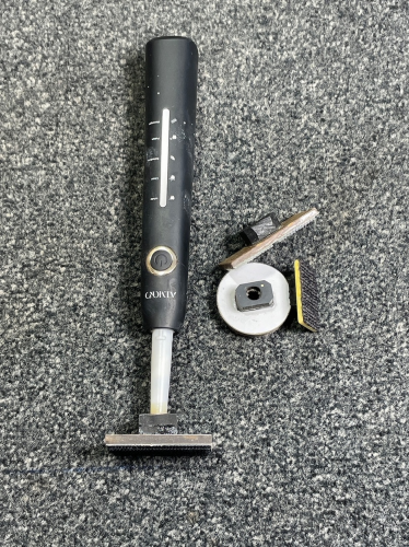Για το τελικό τρίψιμο λοιπόν, πριν αρχίσουν τα φινιρίσματα, καλό είναι -χωρίς να είναι απαραίτητο- ένα τρίψιμο με μικρό παλμικό/περιστροφικό τριβείο (ας πούμε με Ρ180) για λίγη ώρα, με τη δέουσα προσοχή και φροντίζοντας να διατηρώ σταθερό το χρόνο τριψίματος ανά μονάδα επιφάνειας όπως και καλή κατανομή της δύναμης (η καλύτερα της έλλειψης δύναμης) που εφαρμόζω ώστε να αποφύγω τις εκπλήξεις αργότερα.