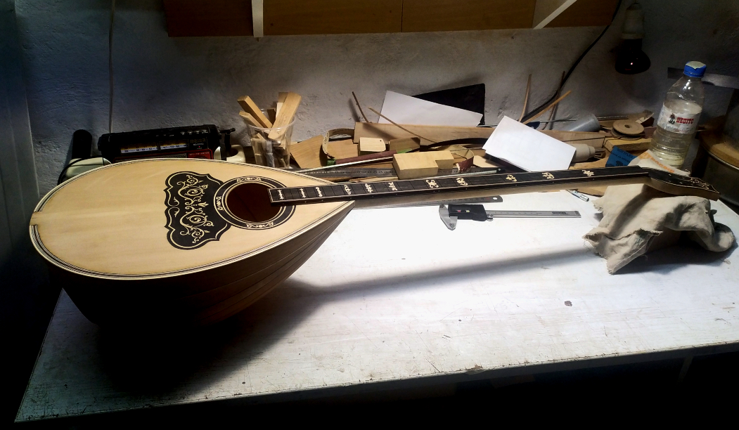 Ενα μισομπουζουκο που προσπαθω το τελευταίο καιρο.σε κλιμακα 65 με καρυδια σκαφος και ελατο στο καπακι!!!!