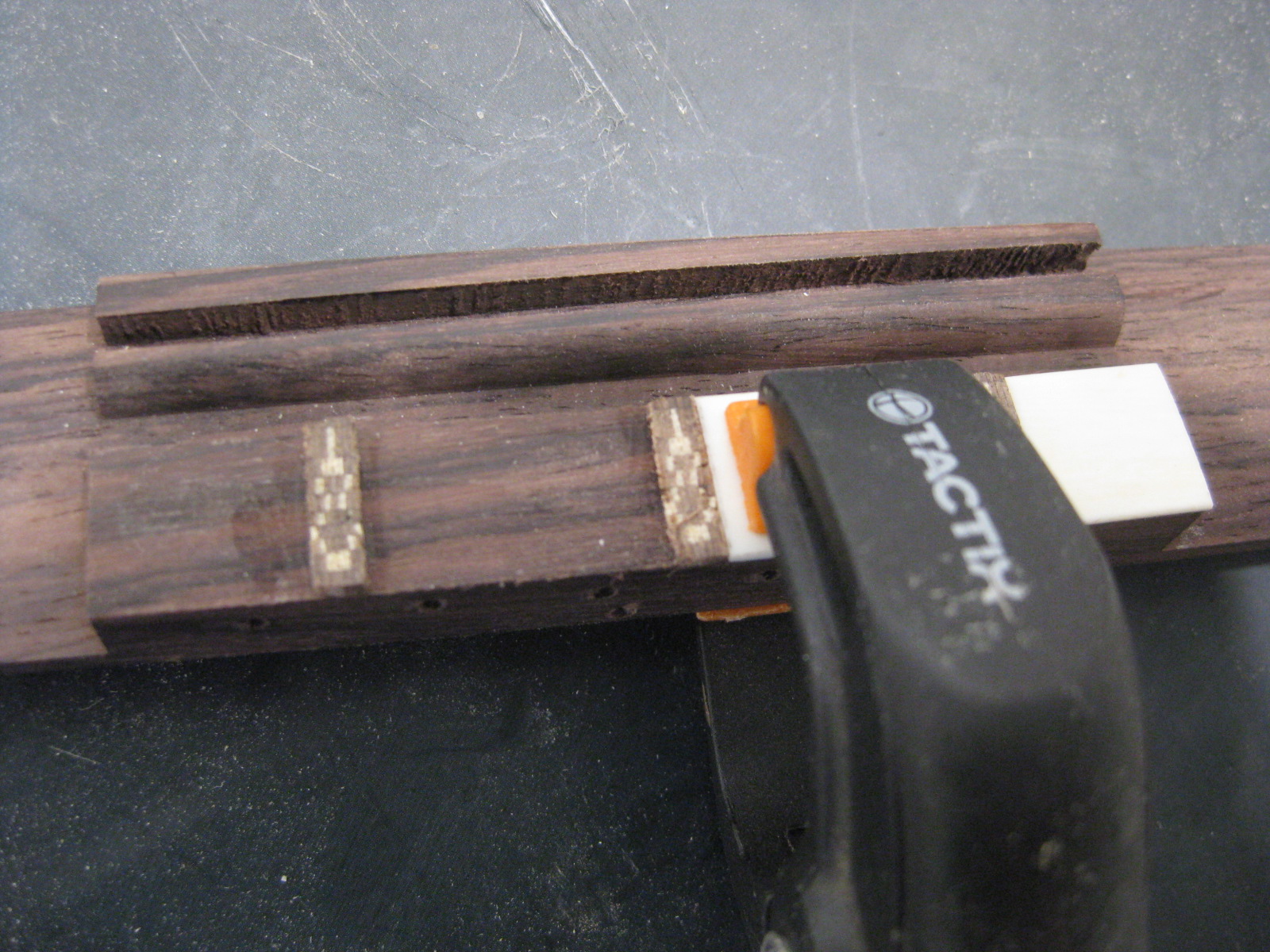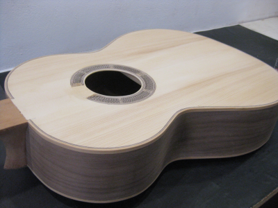εδώ και μια κοντινή από την ροζέτα που έλεγα χτες, μόλις είχε μπει. Είναι ασετόπαστα για πλαϊνά κορδόνια μπουζουκιού που την έχωσα στην ροζέτα και γέμισα με πάστα (εποξική δύο συστατικών με χρώμα - σκόνη αγιογραφίας)