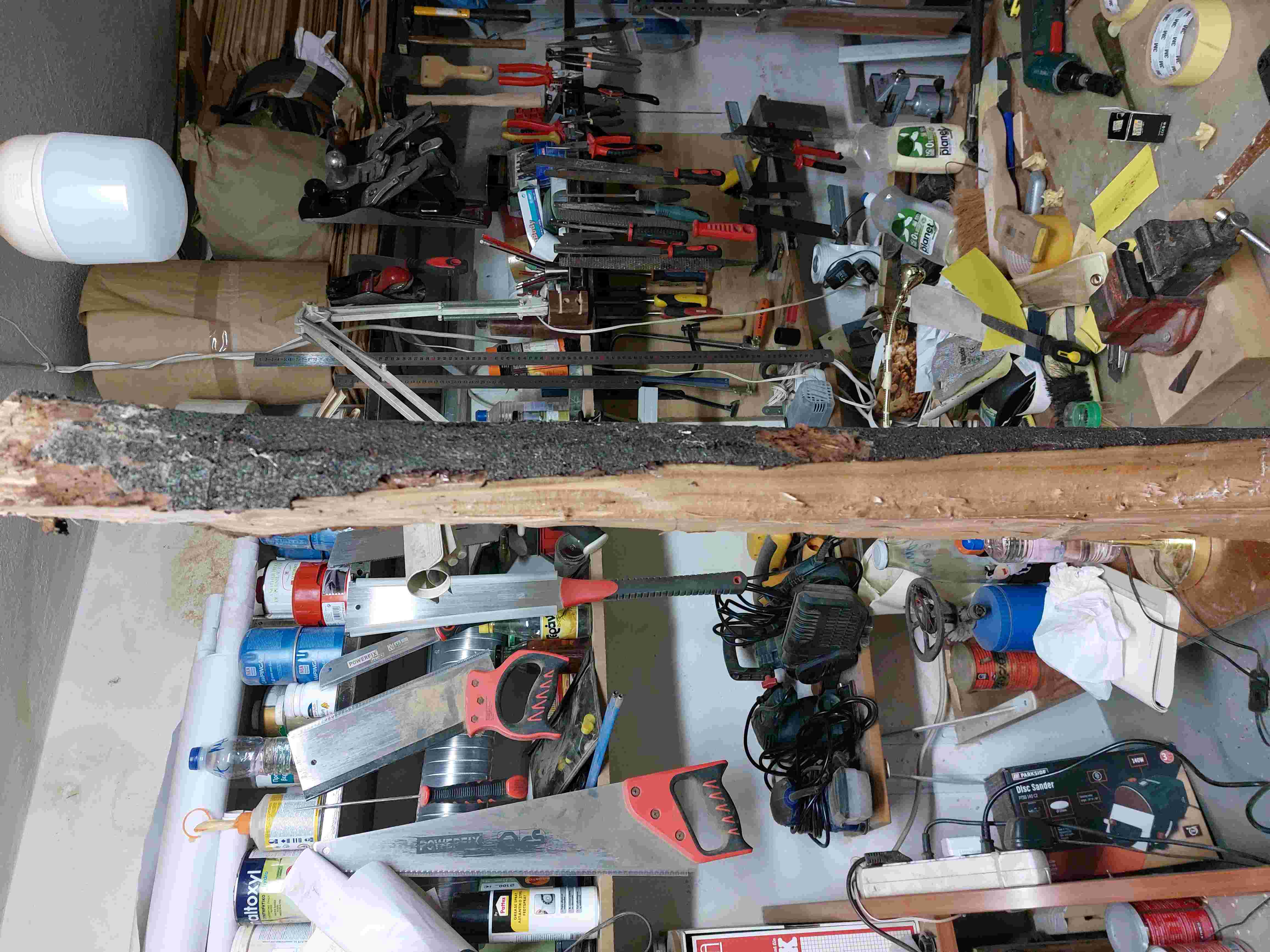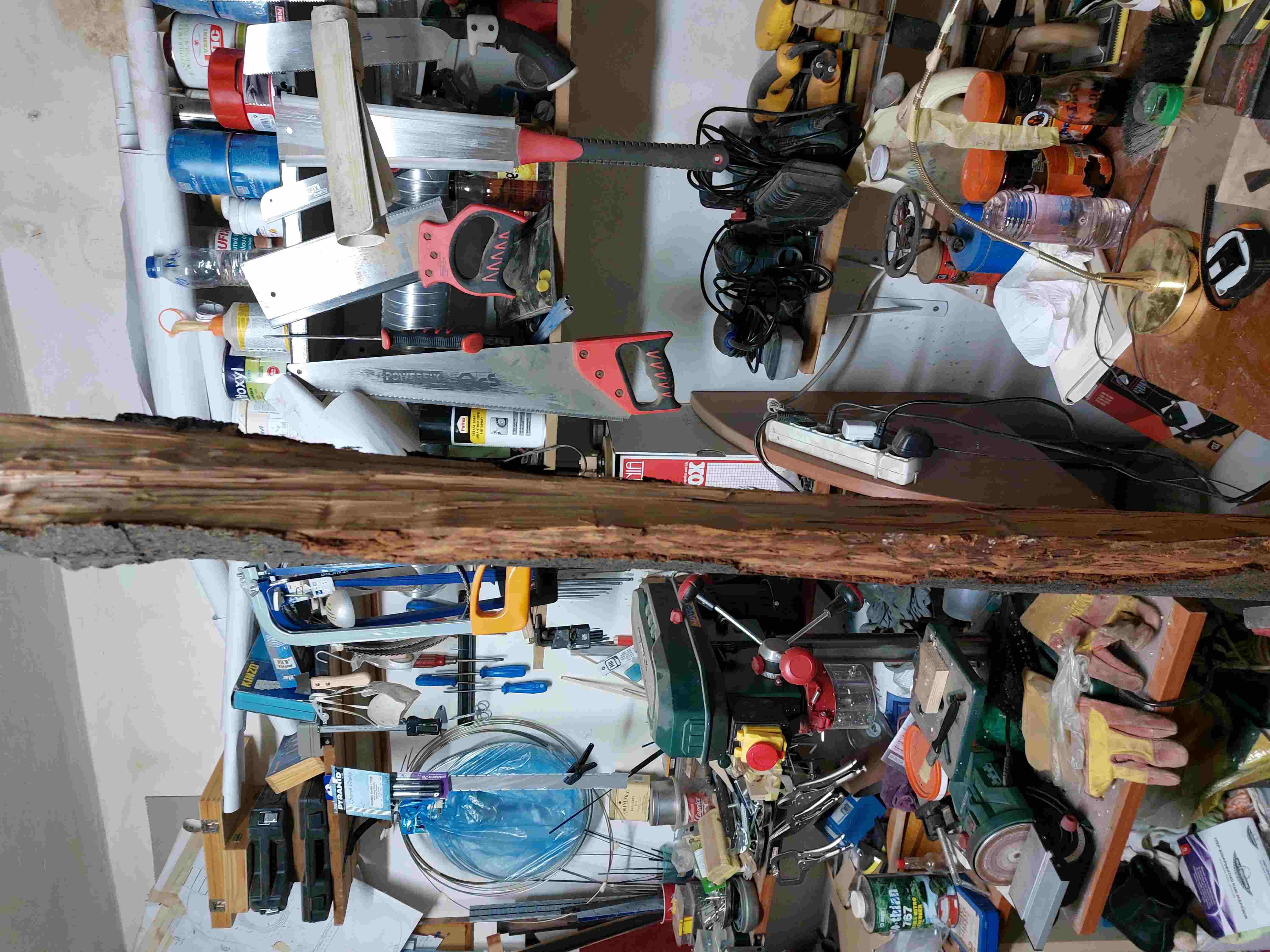 Το ξύλο ήταν κόκκινο και μου άρεσε πολύ. Το έκοψα και στέγνωσε όλο αυτό το διάστημα. Δυστυχώς όμως αυτό το κατακόκκινο χρώμα του ξύλου άνοιξε πολύ και τώρα πια μοιάζει σε λίγο πιο κοκκινωπή κερασιά. Με τον καιρό σιγά-σιγά όμως ο κορμός άνοιξε κατακόρυφα σε όλο το ύψος γύρω στο 1.20. Τώρα το Πάσχα το έσκισα με σφήνες ακολουθώντας το άνοιγμα ο κορμός σκίστηκε σε δύο μέρη. Συνηδειτοποίησα πως ο κορμός παρουσιάζει μια στρέψη γύρω από τον άξονα του. Το πως στρίβει φαίνεται στην φωτογραφία. Σκοπός μου ήταν να το κόψω σε ντούγιες για μπουζούκια αλλά τώρα με προβληματίζουν τα νερά που στρίβουνε. Εν τω μεταξύ φαίνεται πως μπορεί να βγάλει σε κάποια σημεία και σγουρό. Τι λέτε να το κόψω για ντούγιες ή θα σπάσουνε στο λύγισμα;